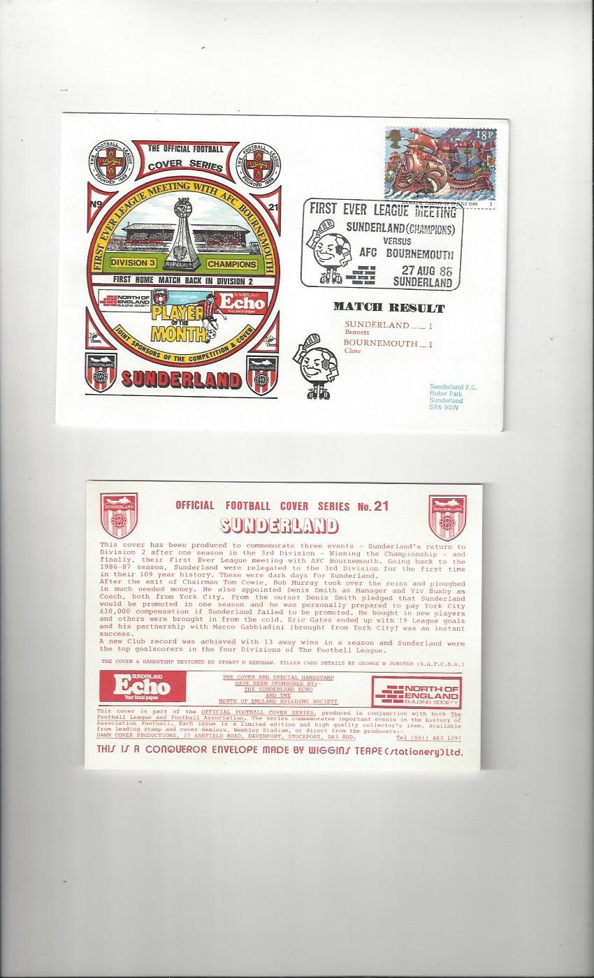Sunderland v Bournemouth Football First Day Cover + Insert 1988