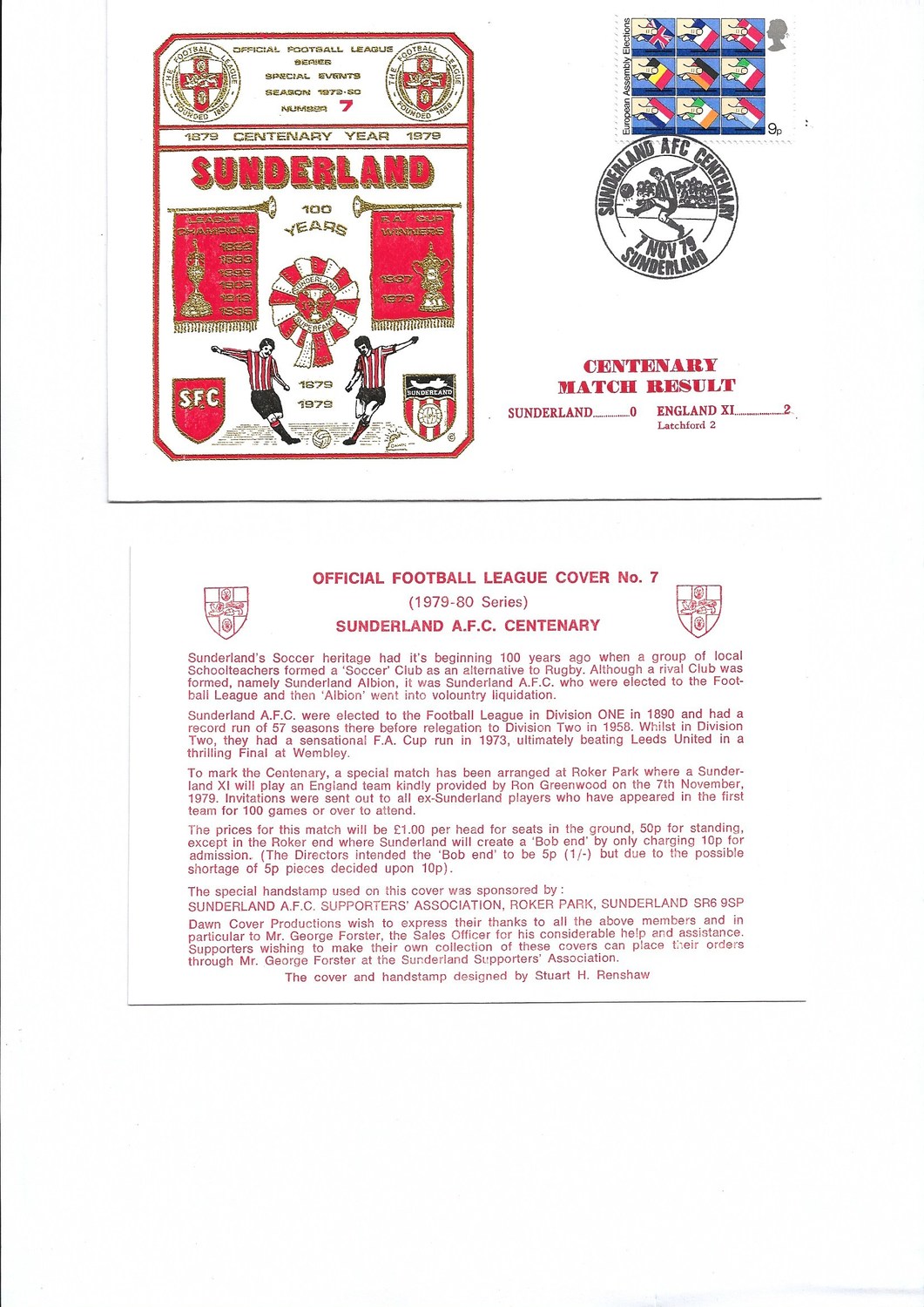 Sunderland v England XI Football First Day Cover + Insert 1979