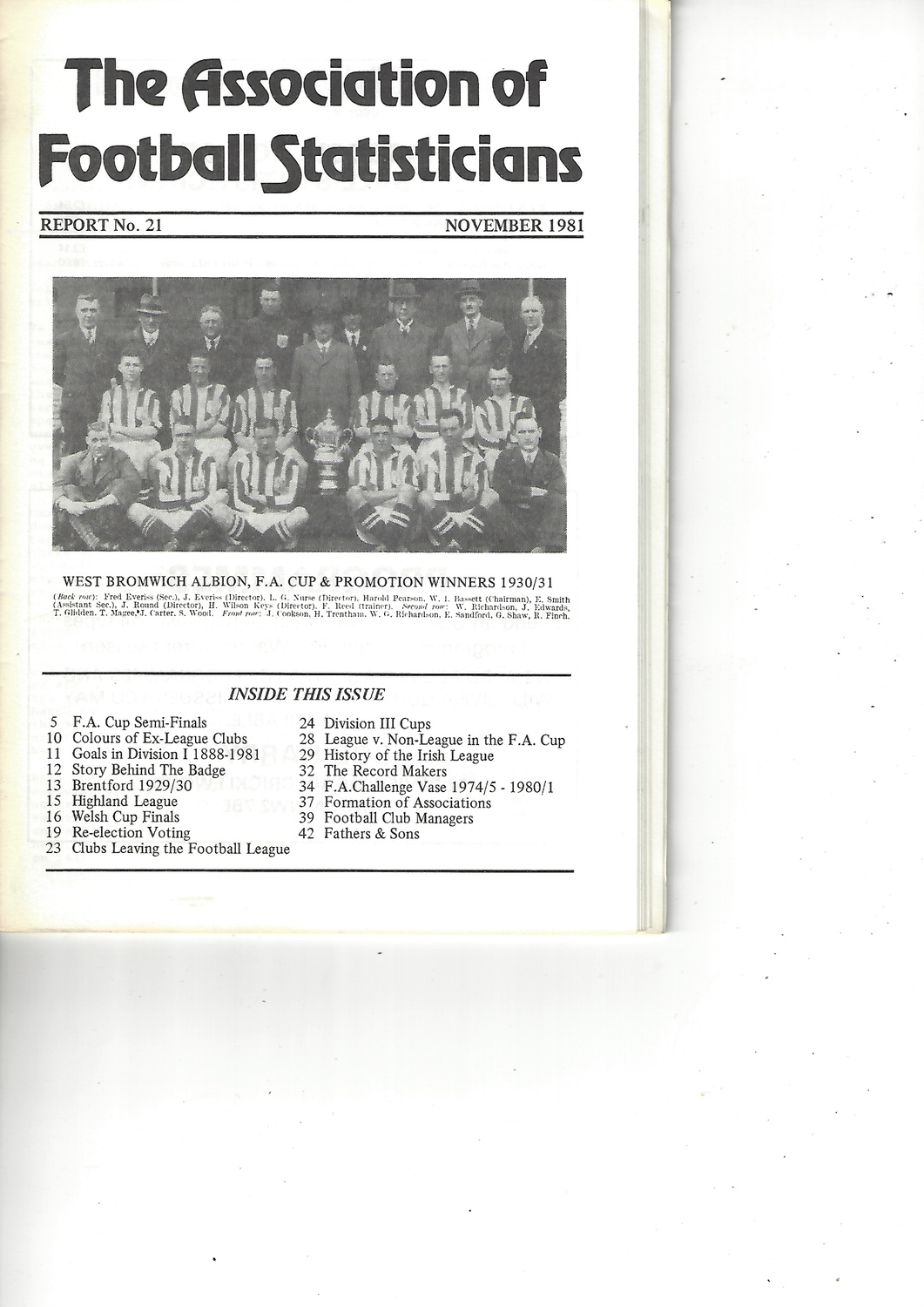 The Association of Football Statisticians Report No. 21