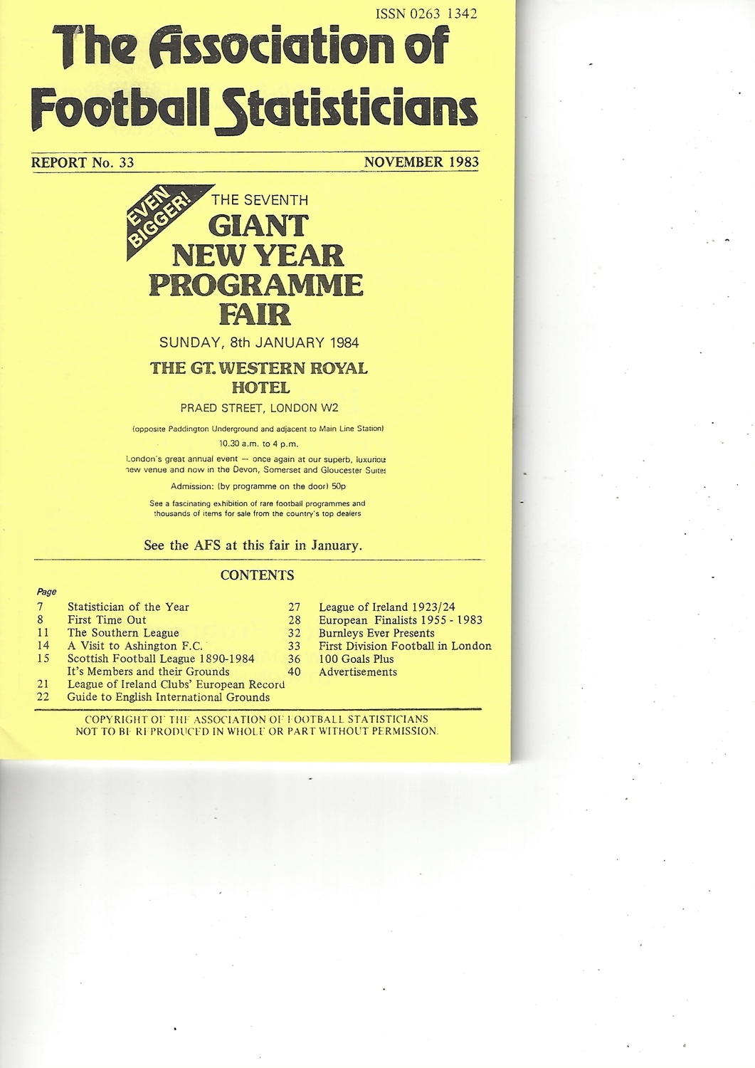The Association of Football Statisticians Report No. 33