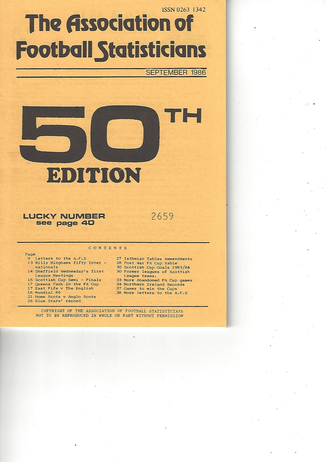 The Association of Football Statisticians Report No. 50