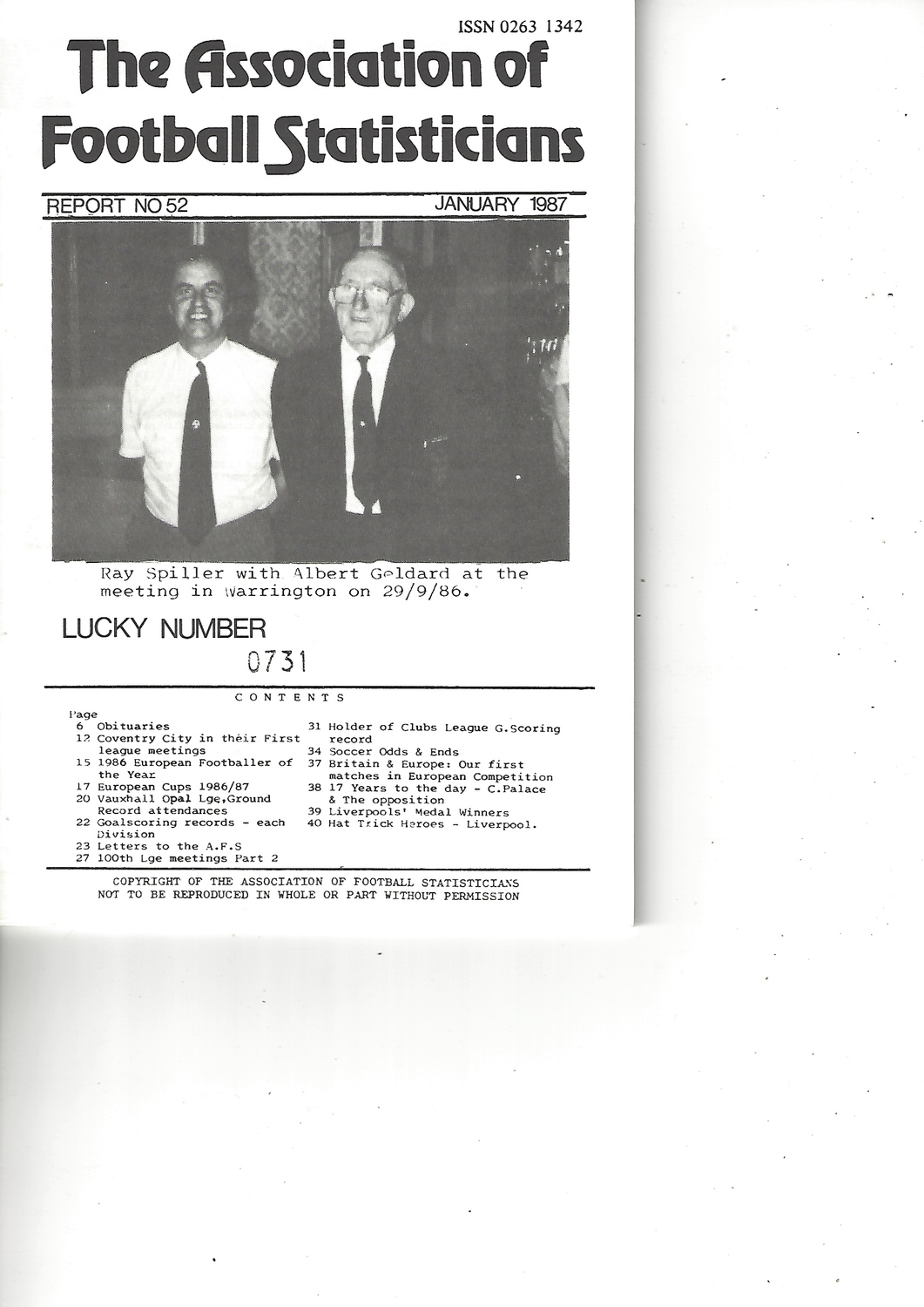 The Association of Football Statisticians Report No. 52