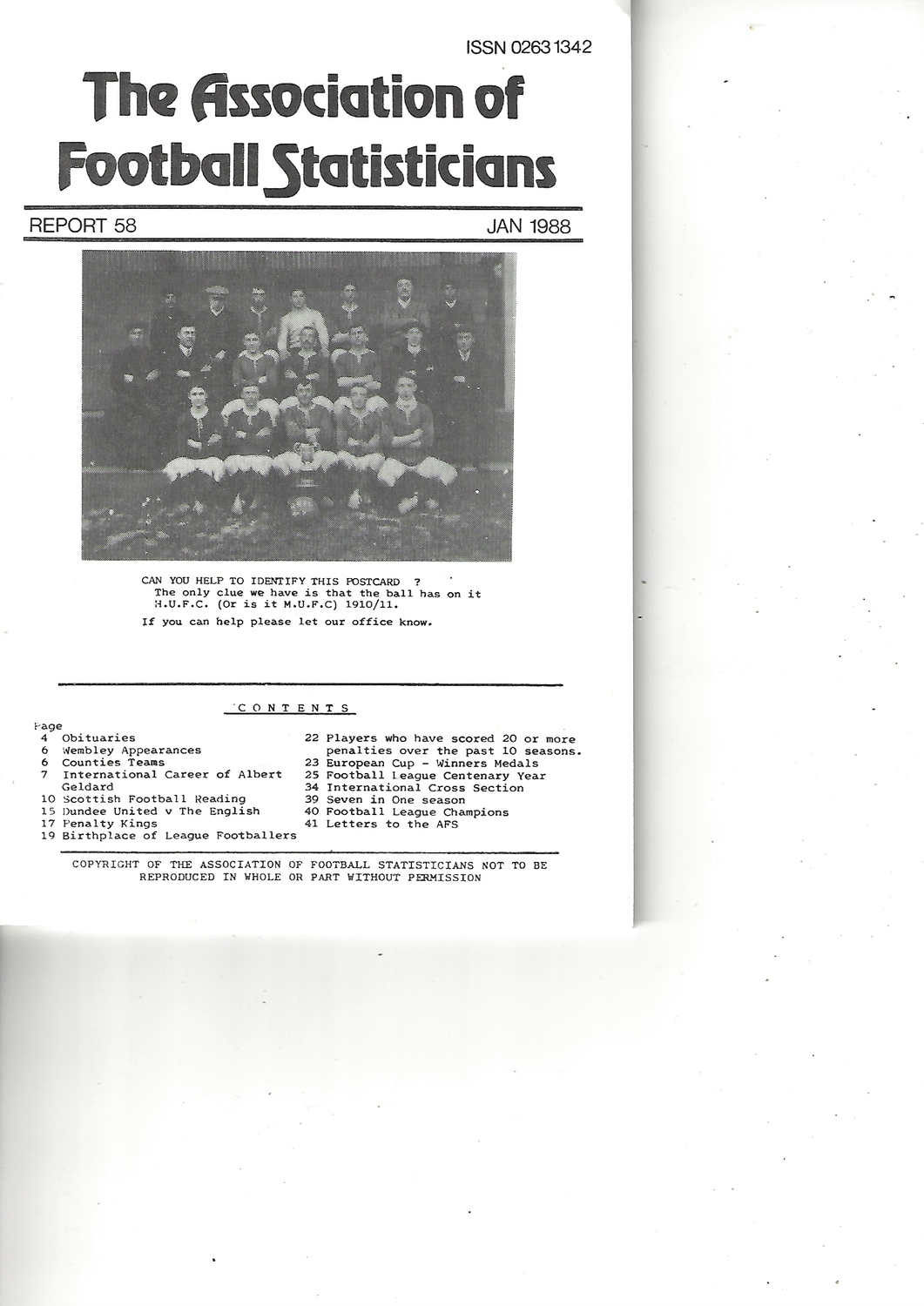 The Association of Football Statisticians Report No. 58