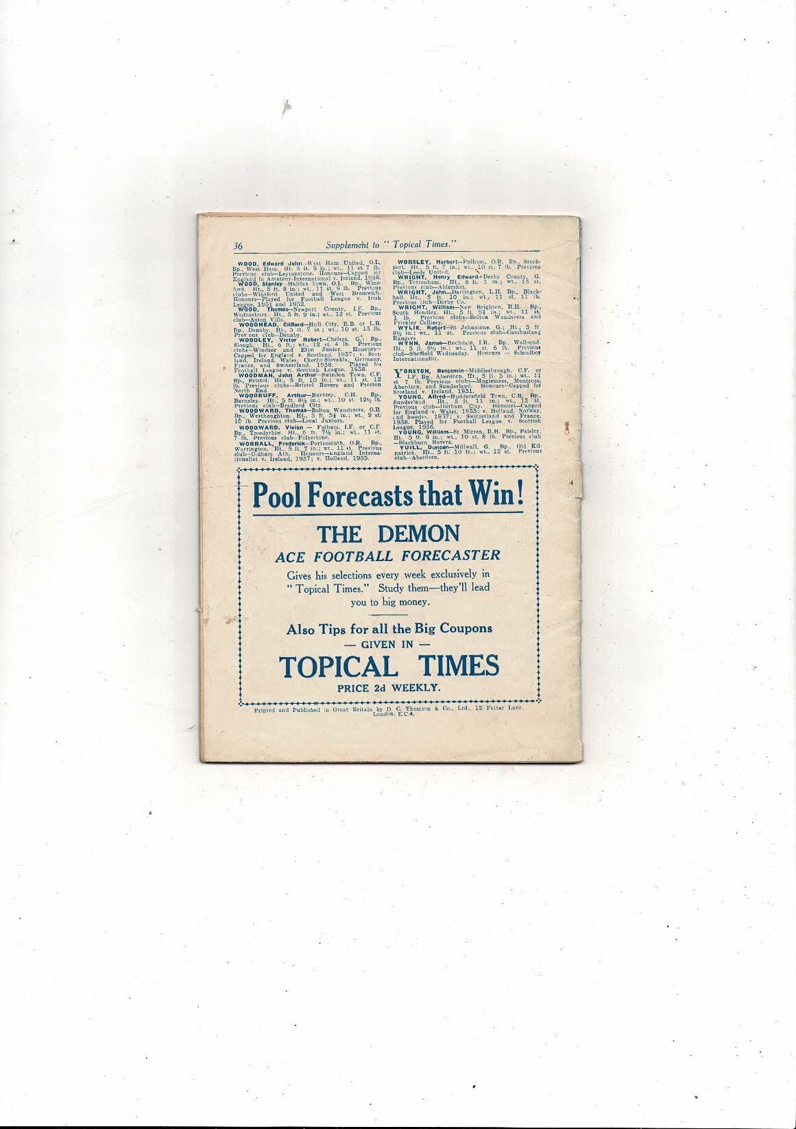 Facts and figures on the footballers of 1938 by Topical Times