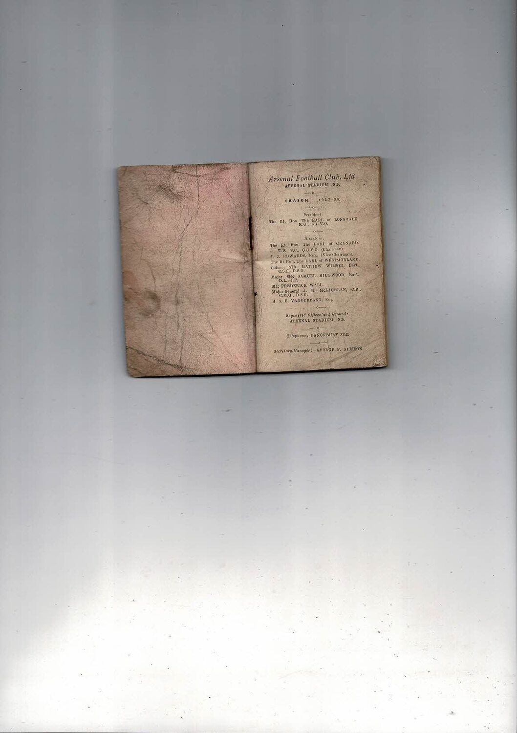 Arsenal Football Handbook 1937/38
