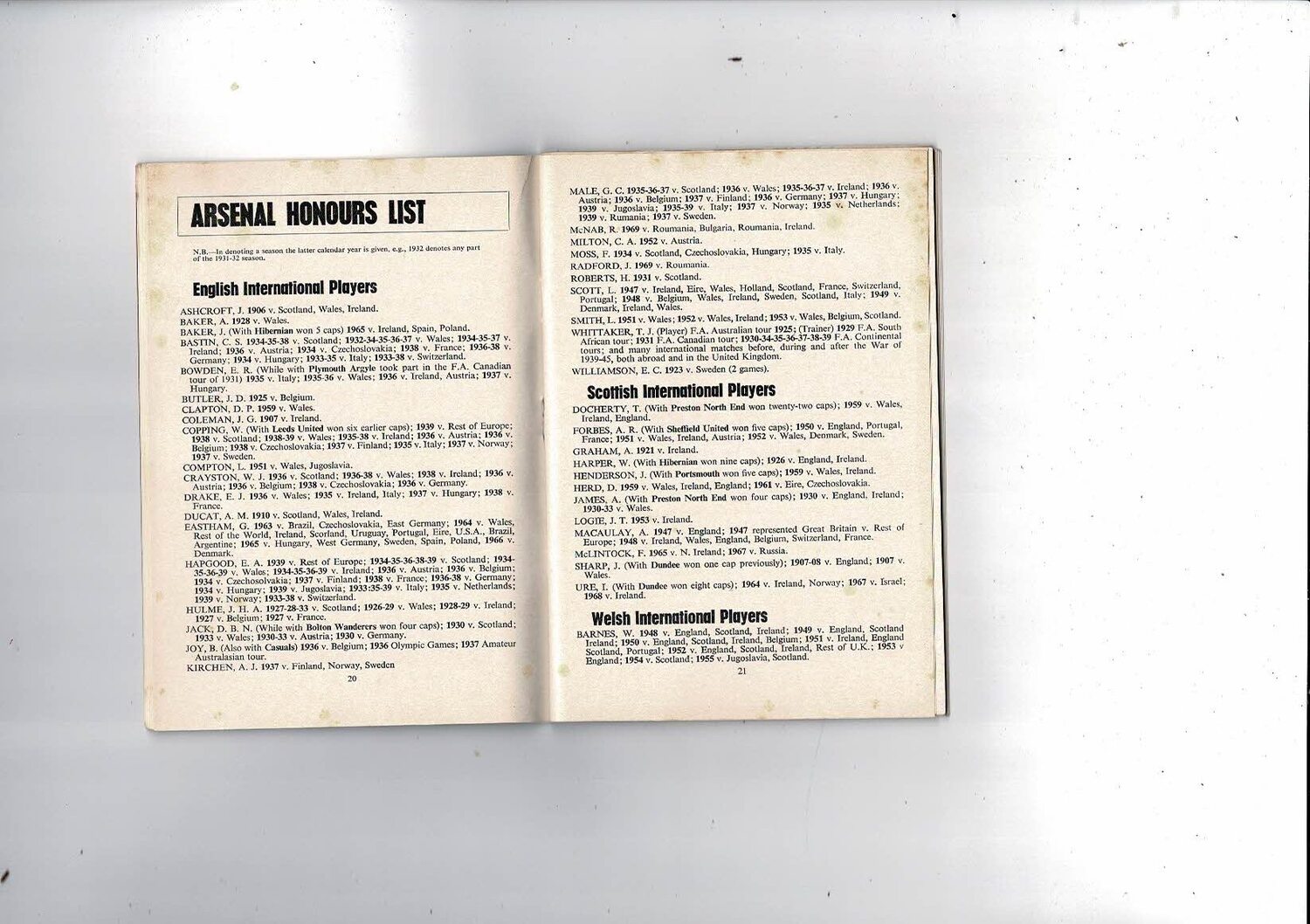 Arsenal Official Football Handbook 1969/70