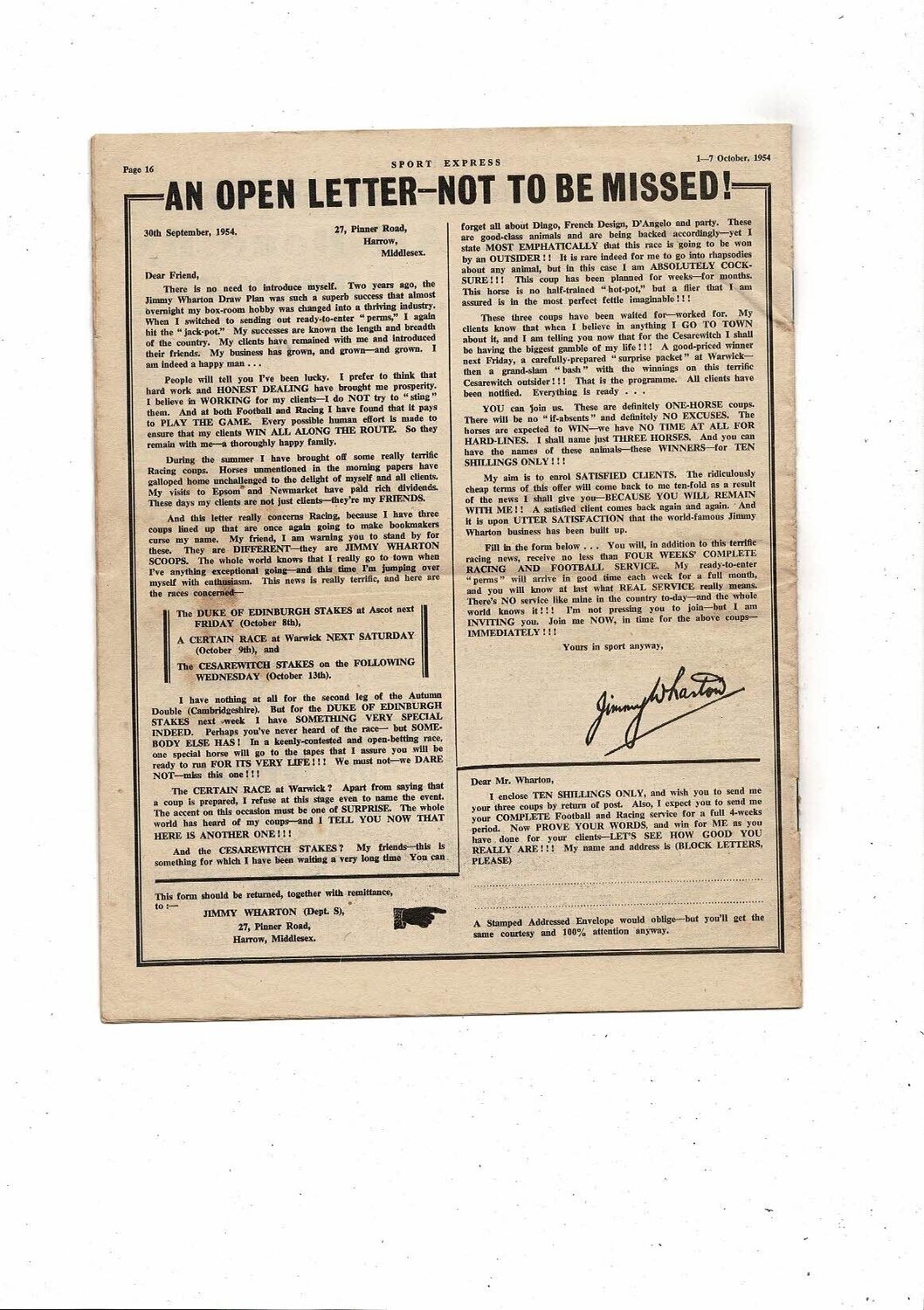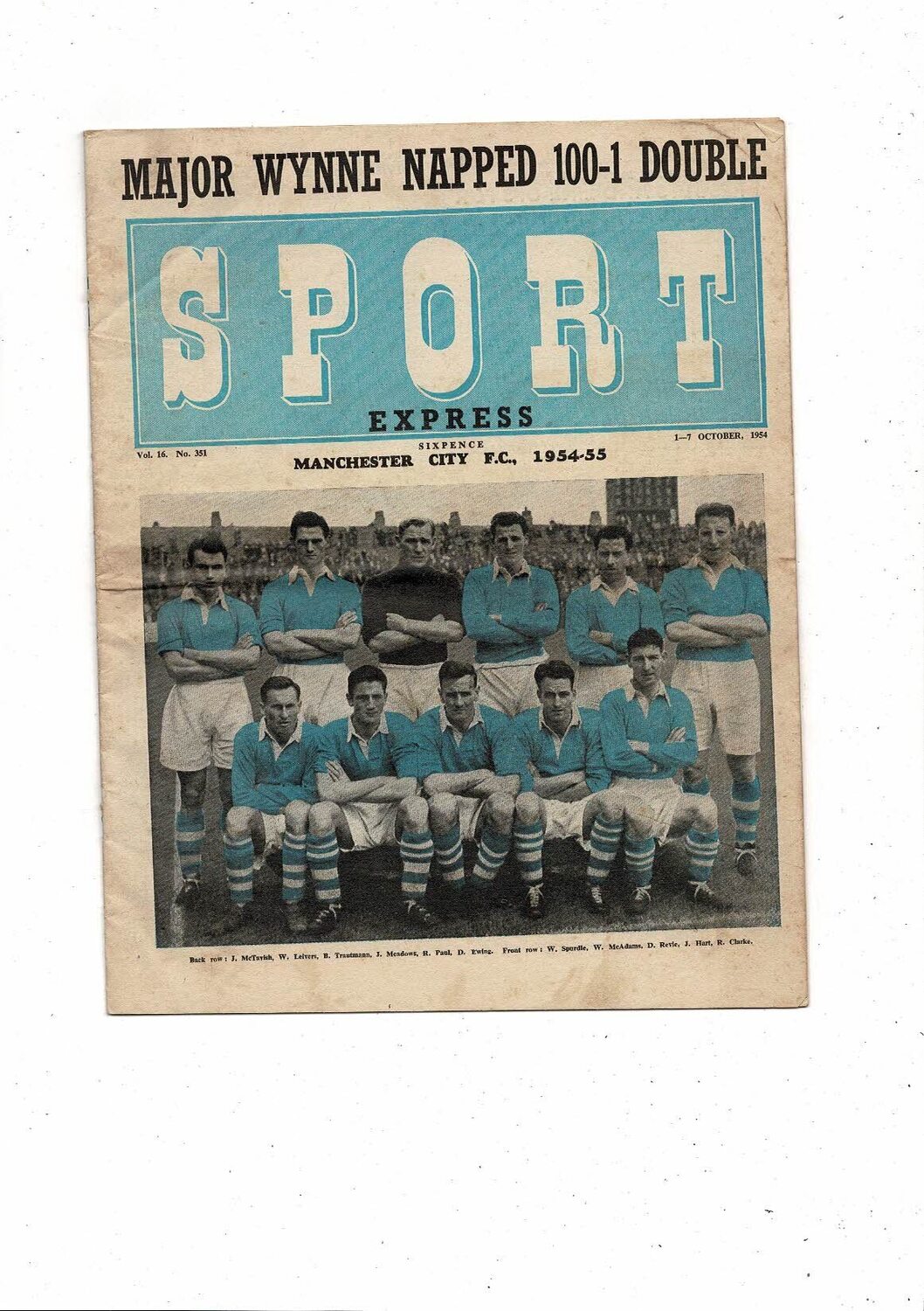 1954 Sport Express Football Magazine Oct 1st - 7th Manchester City Vol 16 No 351