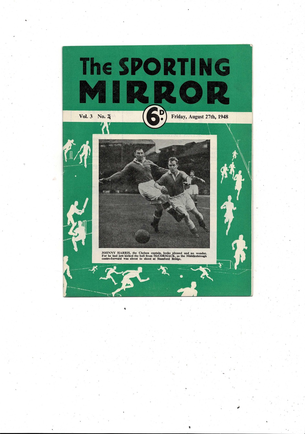 This Official Sporting Mirror is slightly creased with staple just starting to rust. No handwriting