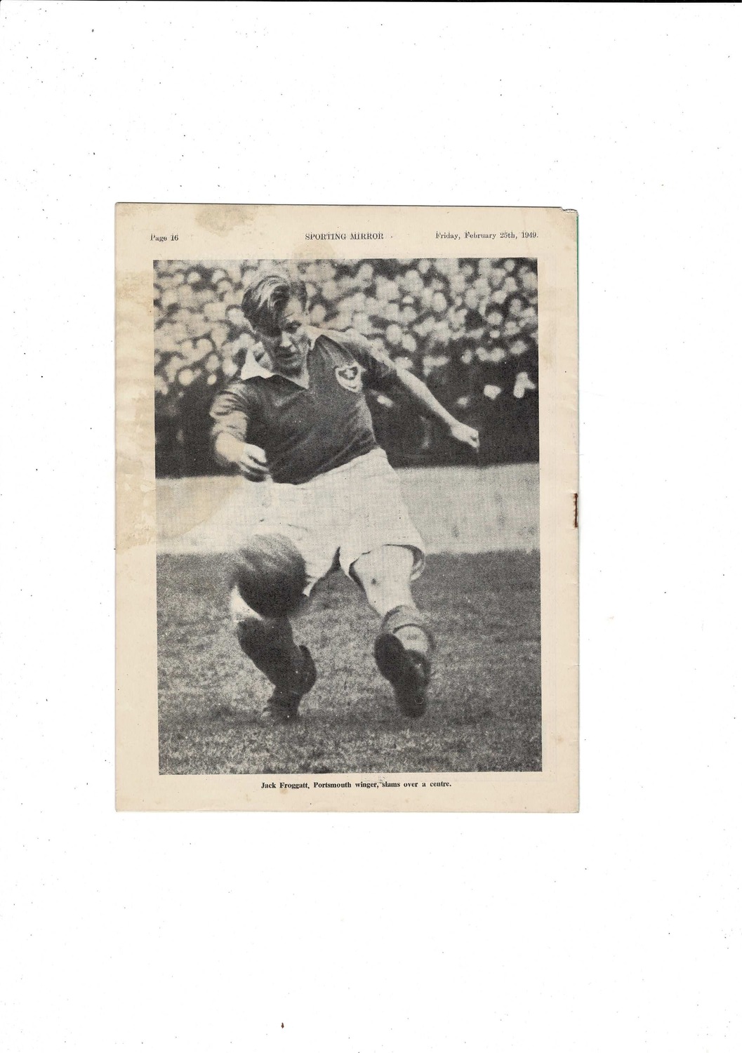 This Official Sporting Mirror is creased & stained with small piece missing on top of spine & rusty staple. No handwriting