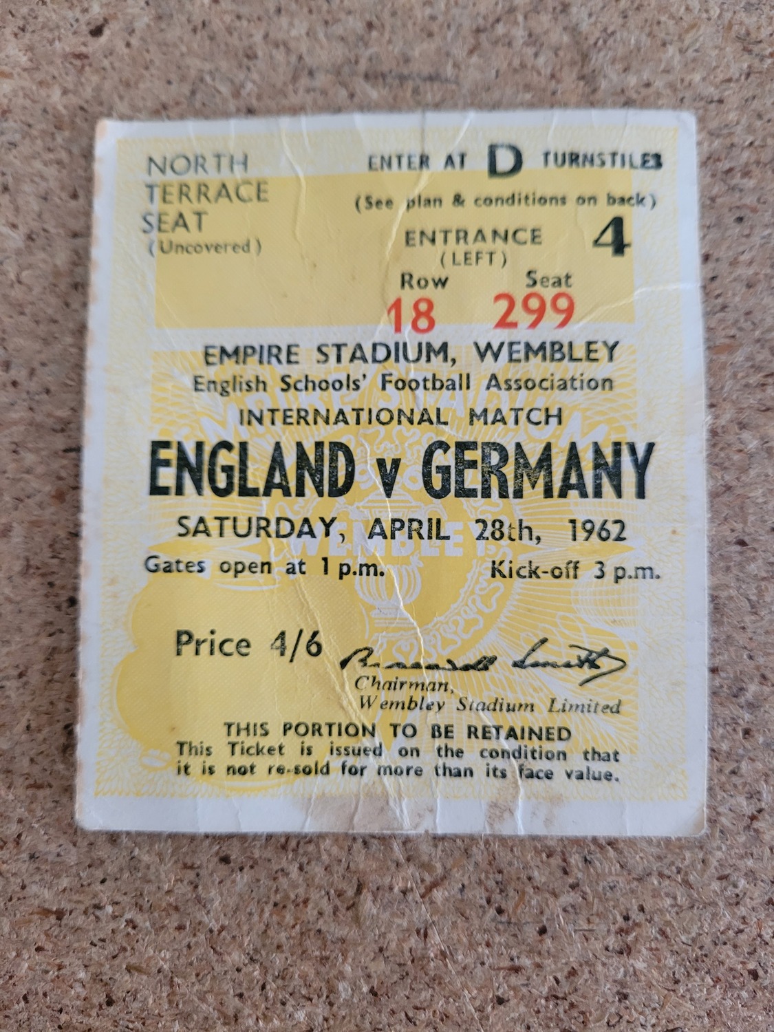 1962 England v Germany Schools International Football Match Ticket