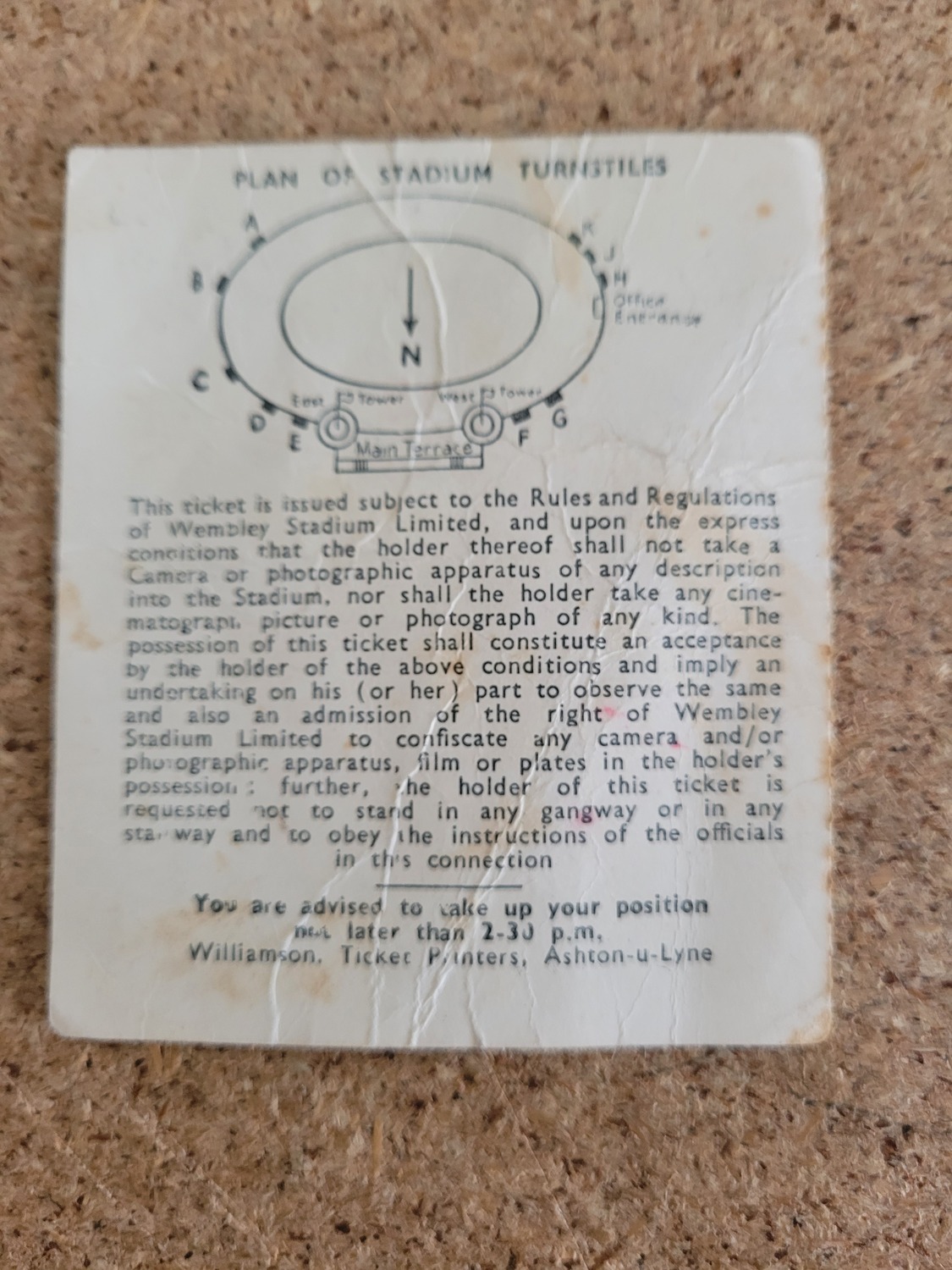 This original Football Match Ticket is creased also has a fold with some staining. No handwriting. Please see scans