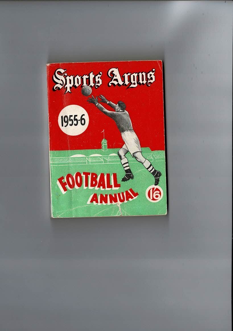 This Original Sports Argus Football Annual is creased with tear on front cover, rusty staples, some staining, minor damage to spine & some results filled in