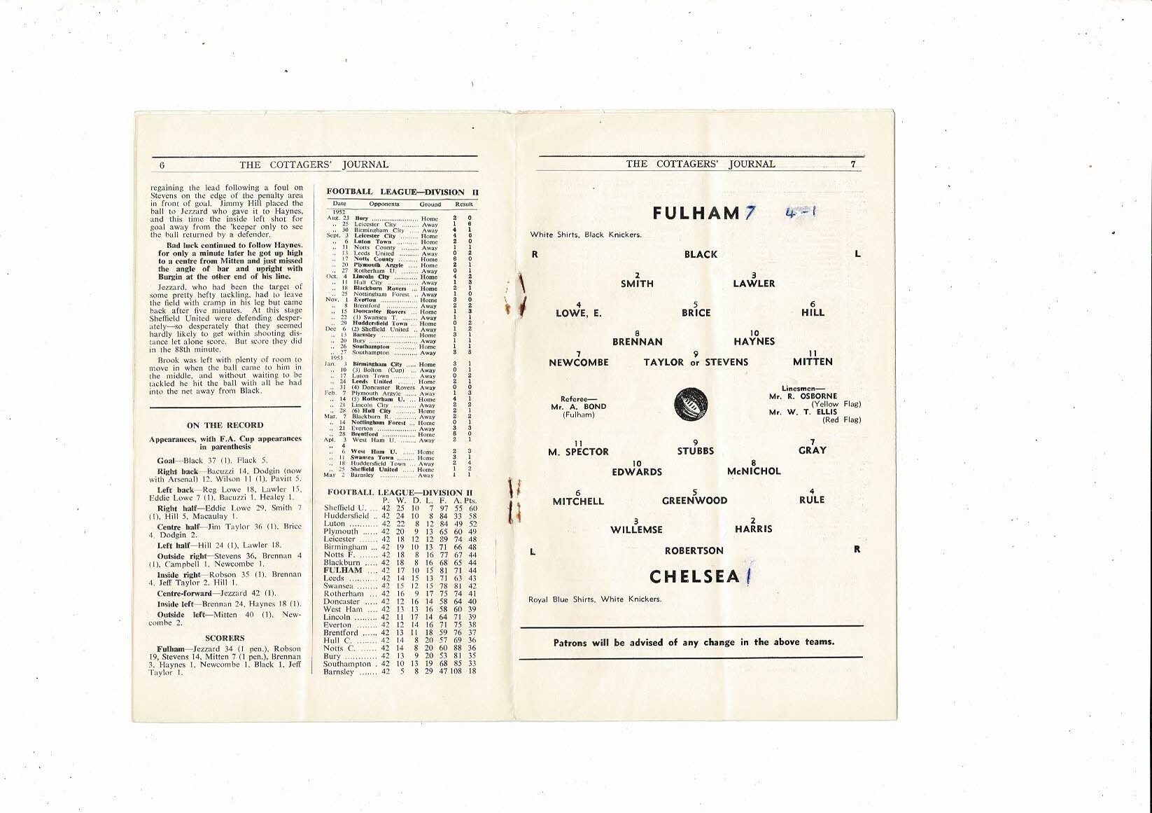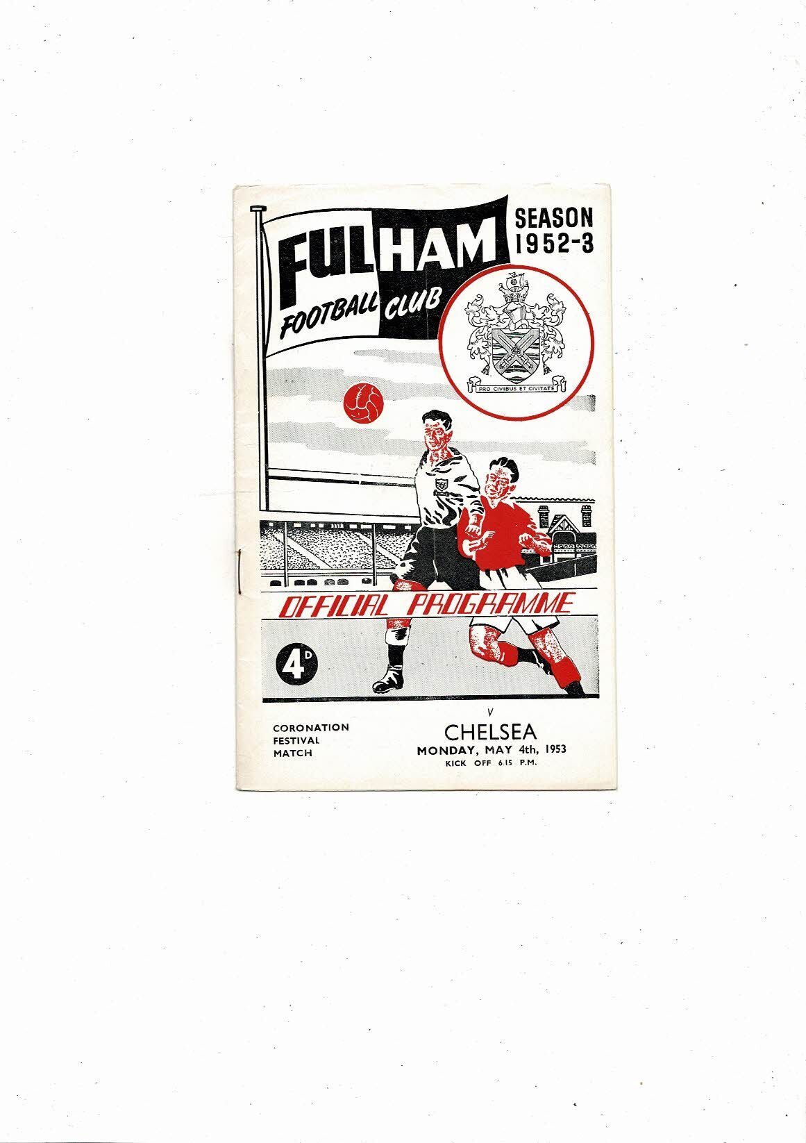Fulham v Chelsea Coronation Festival Friendly Football Programme 1952/53