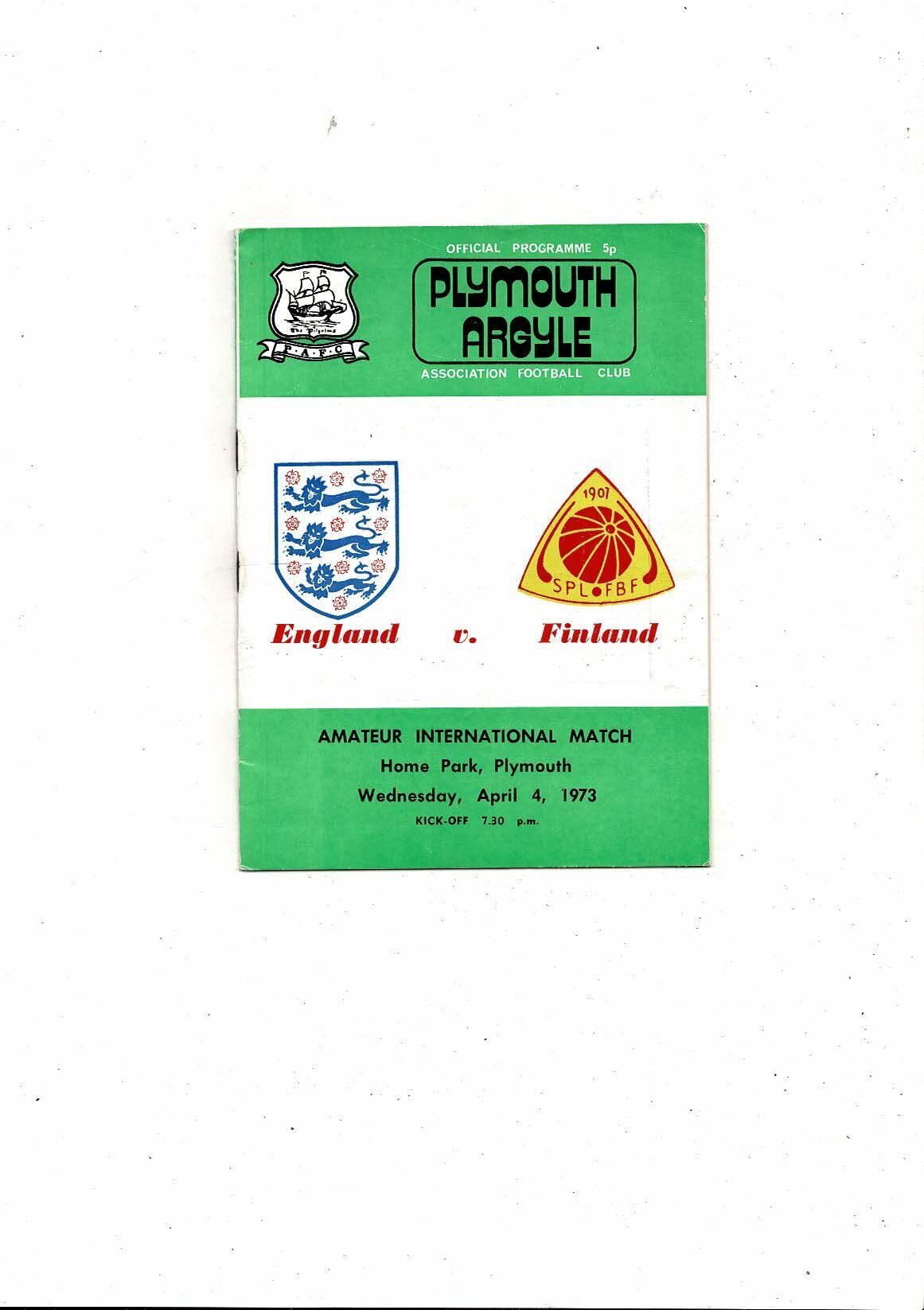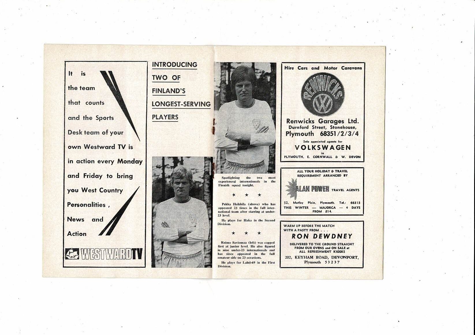 1973 England v Finland Amateur International Football Programme at Plymouth