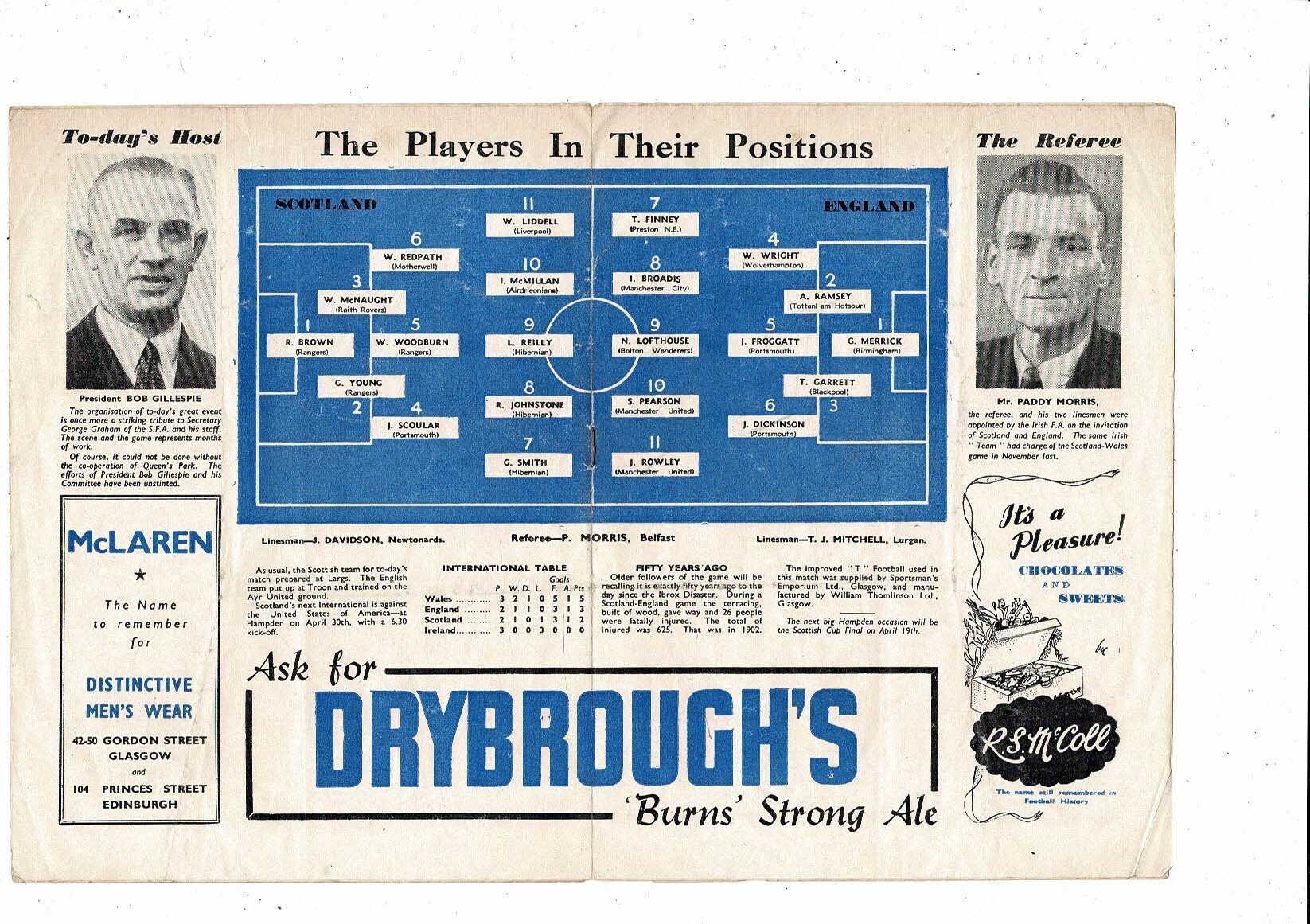 1952 Scotland v England Football Programme