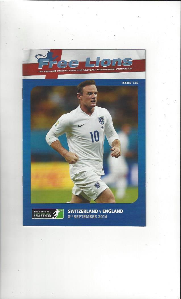 2014 Switzerland v England Football Programme + Three Lions Fanzine