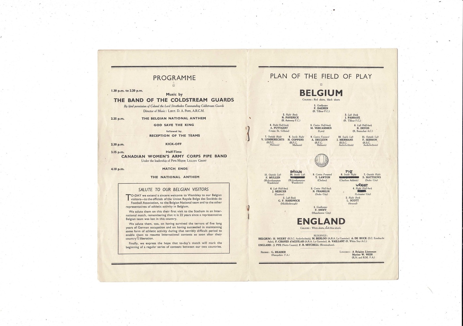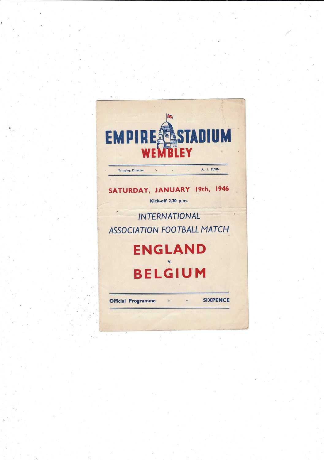1946 England v Belgium Football Programme