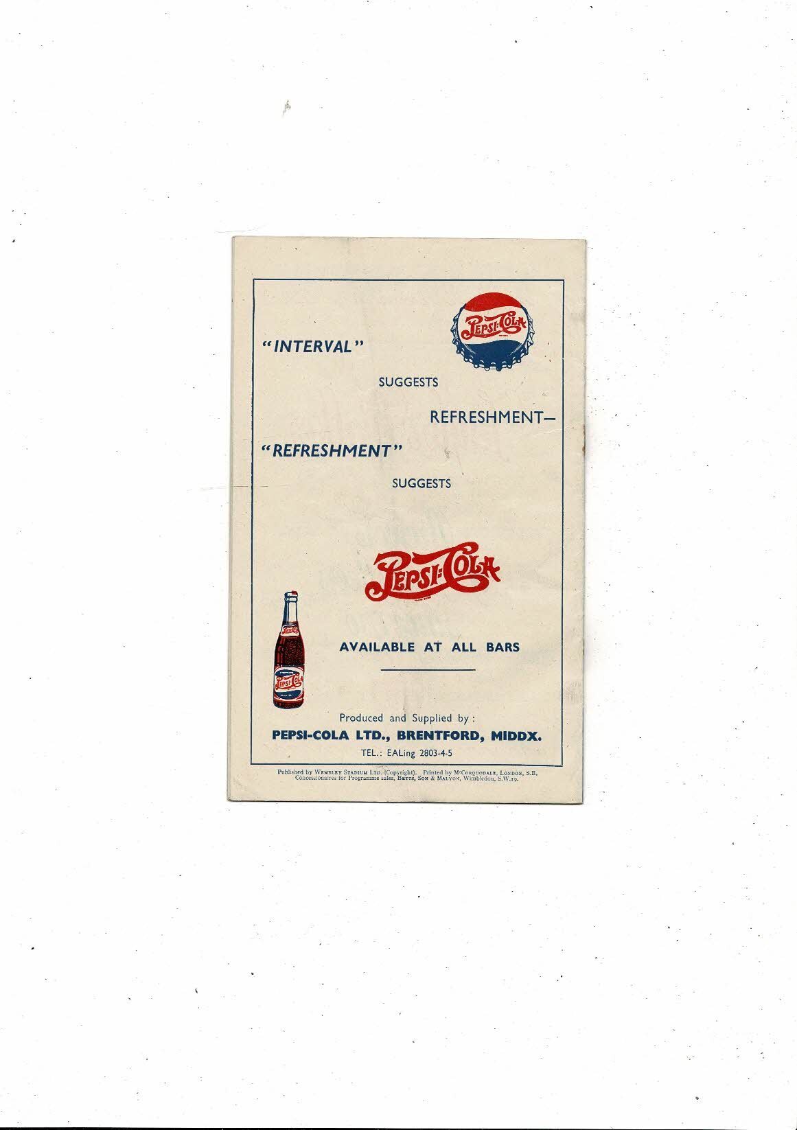 This original Football Programme is slightly creased with rusty staples, small tear on front cover & some minor staining. No handwriting. Please see scans.