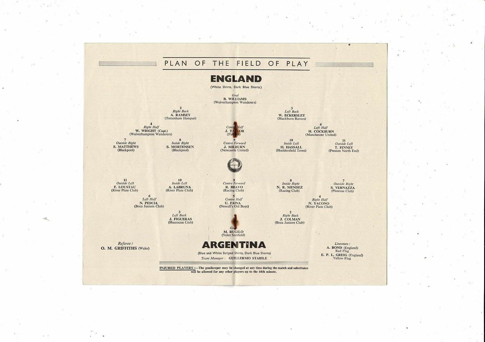 1951 England v Argentina Football Programme