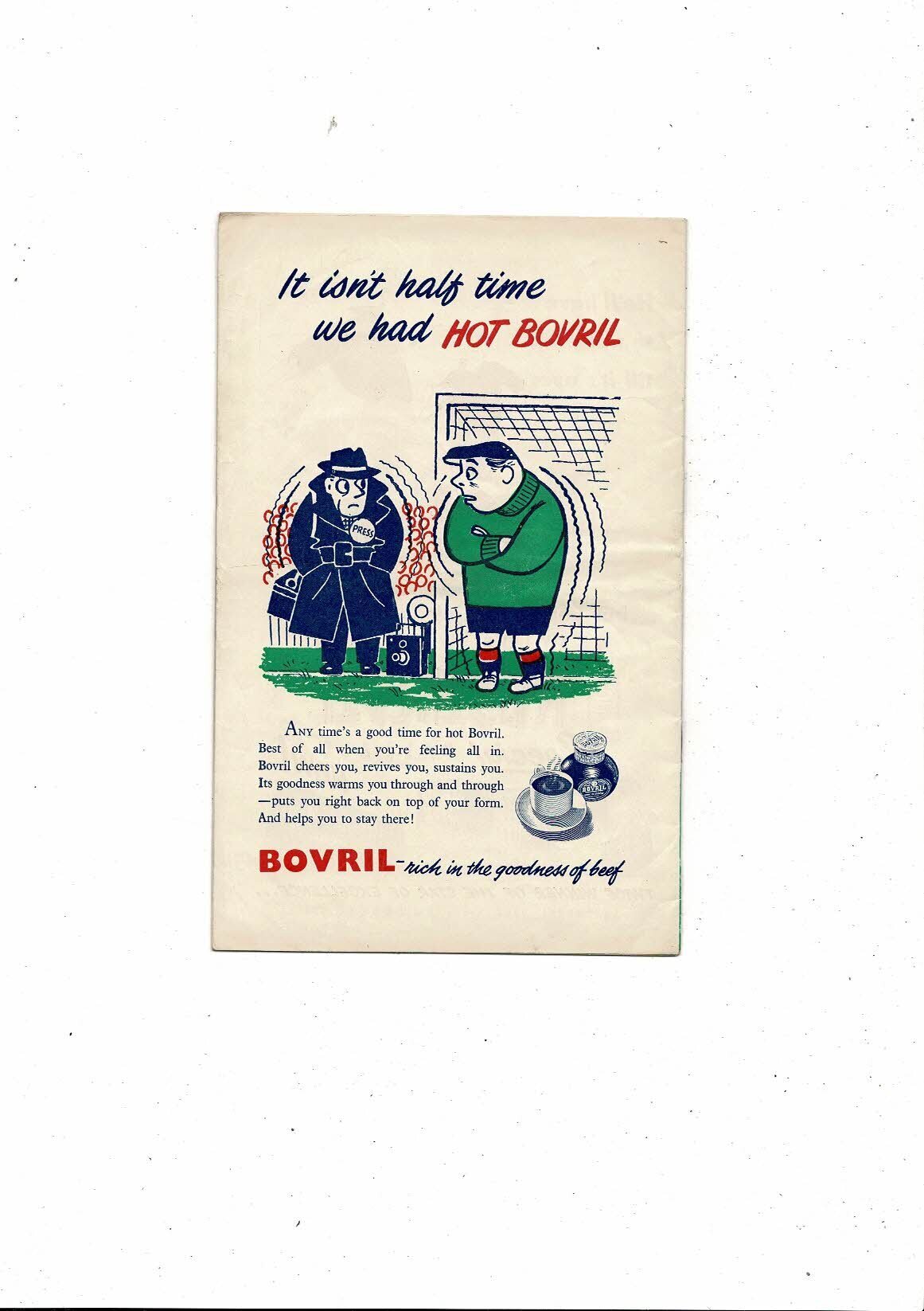 This Original Football Programme is creased also has a fold with some very minor staining, tear on spine & front cover. No handwriting. Please see scans.