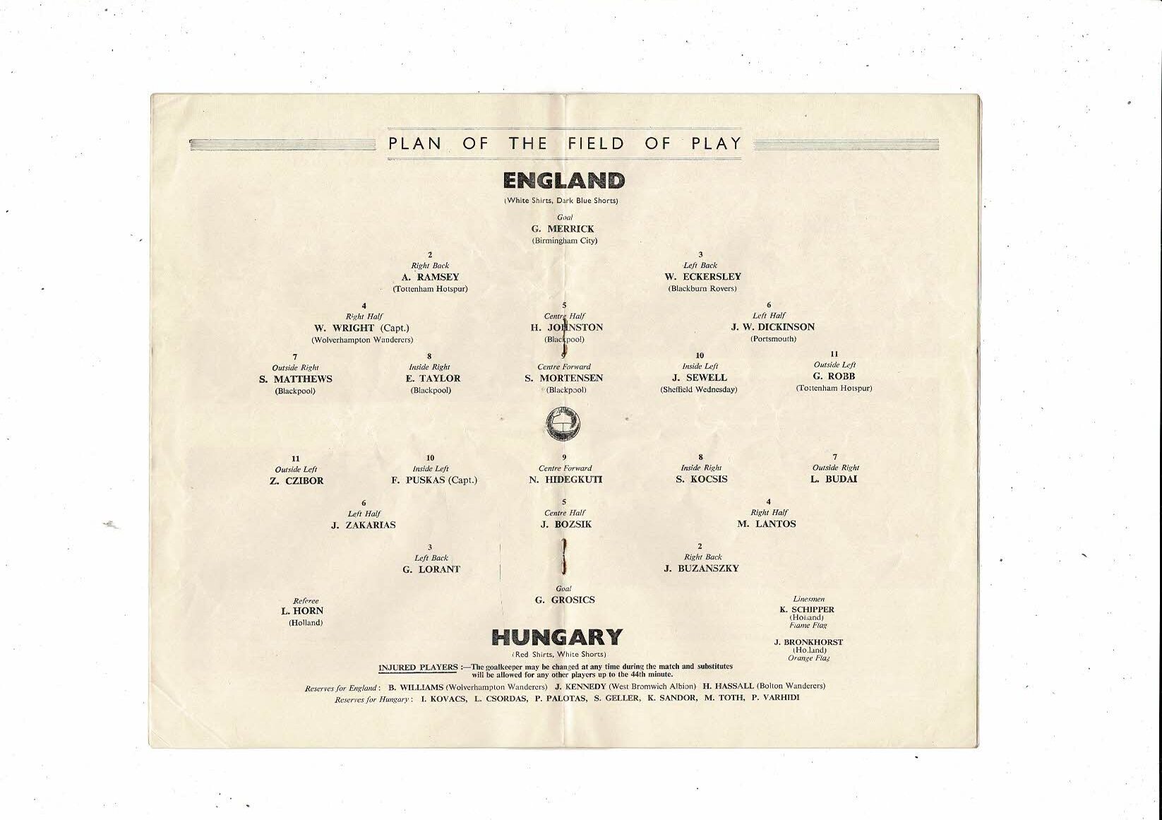 1953 England v Hungary Football Programme