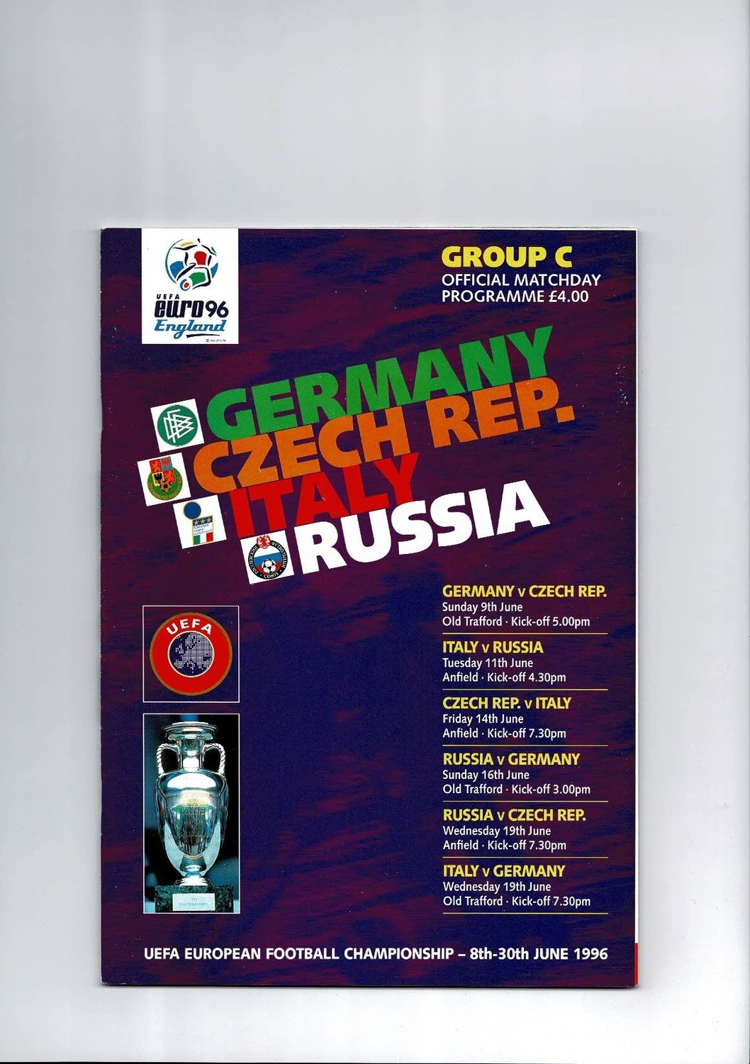 Euro 96 Group C Germany, Czech, Italy & Russia Football Football Programme
