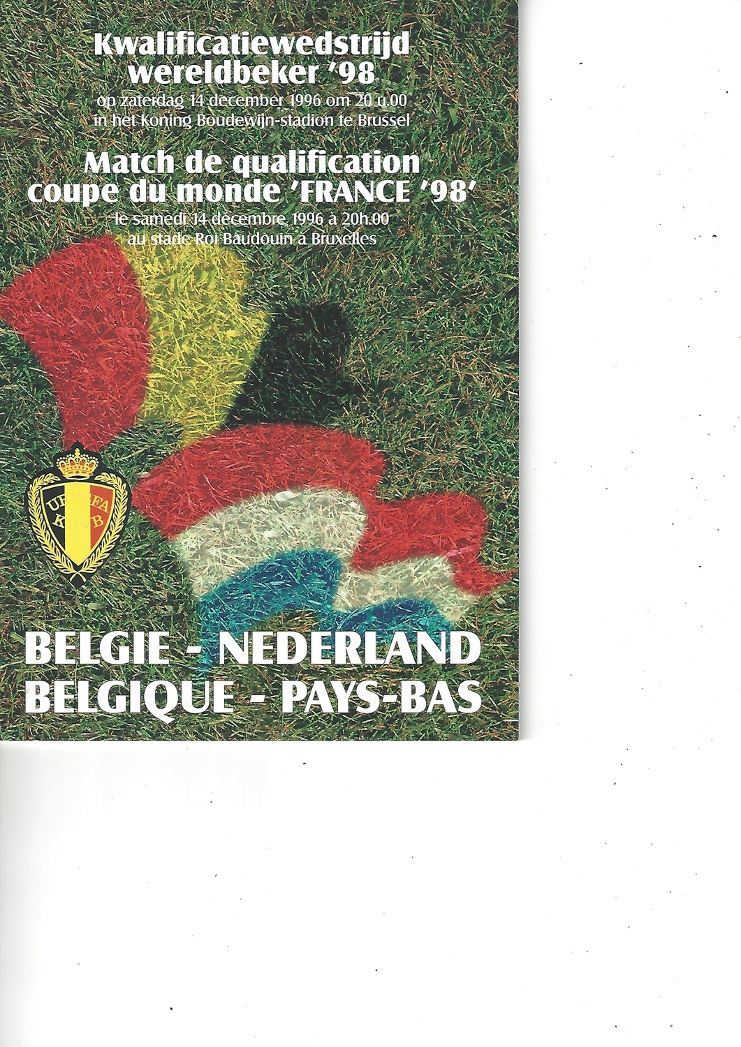 Belgium v Holland Football Programme 1996