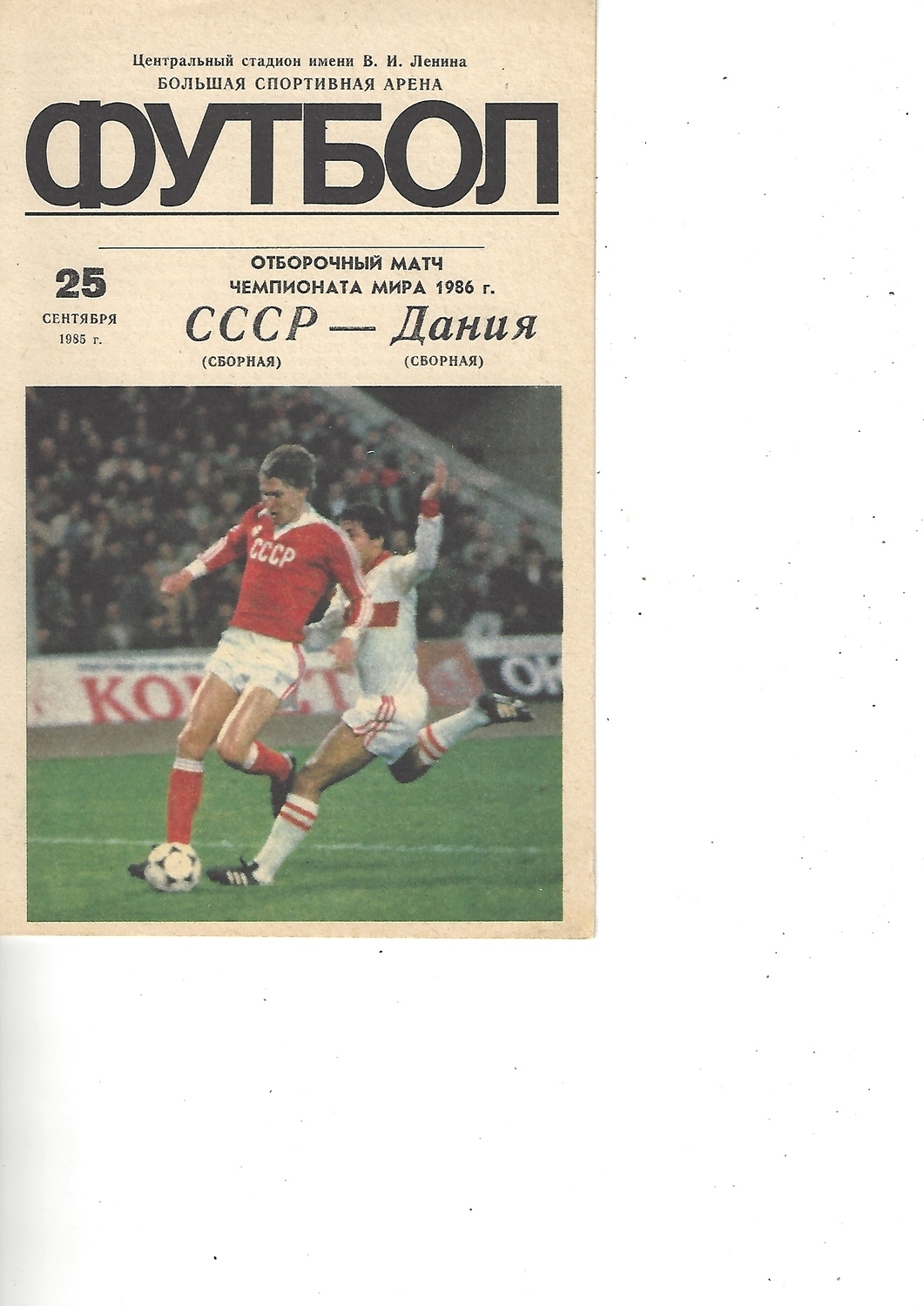 Russia v Denmark Football Programme 1985