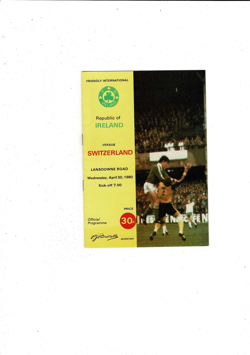 1980 Republic of Ireland v Switzerland Football Programme
