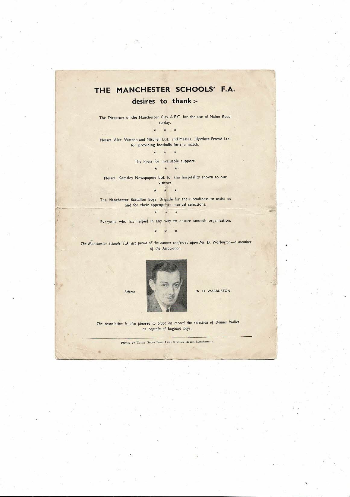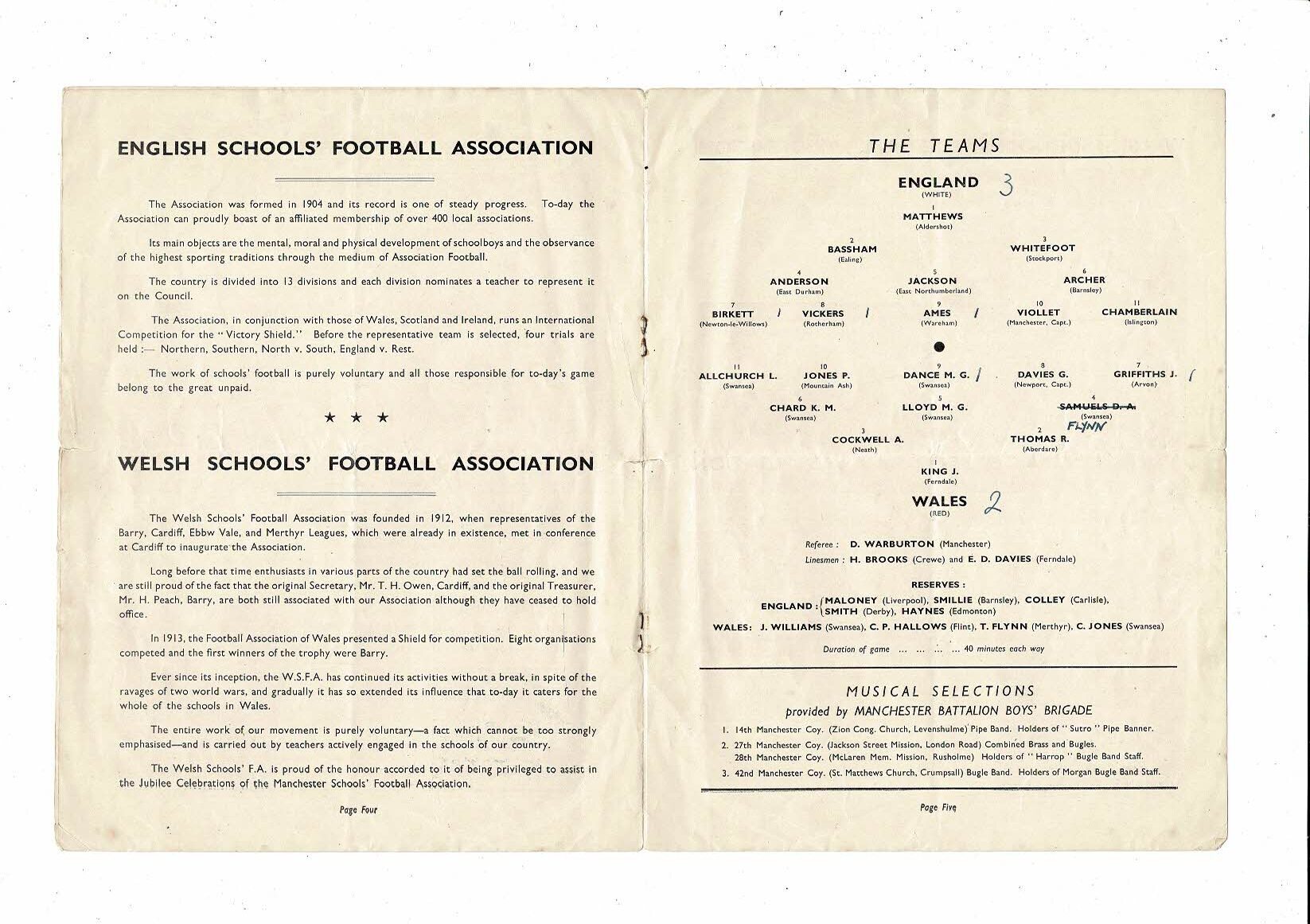 1949 England v Wales Schools International Football Programme @ Manchester City