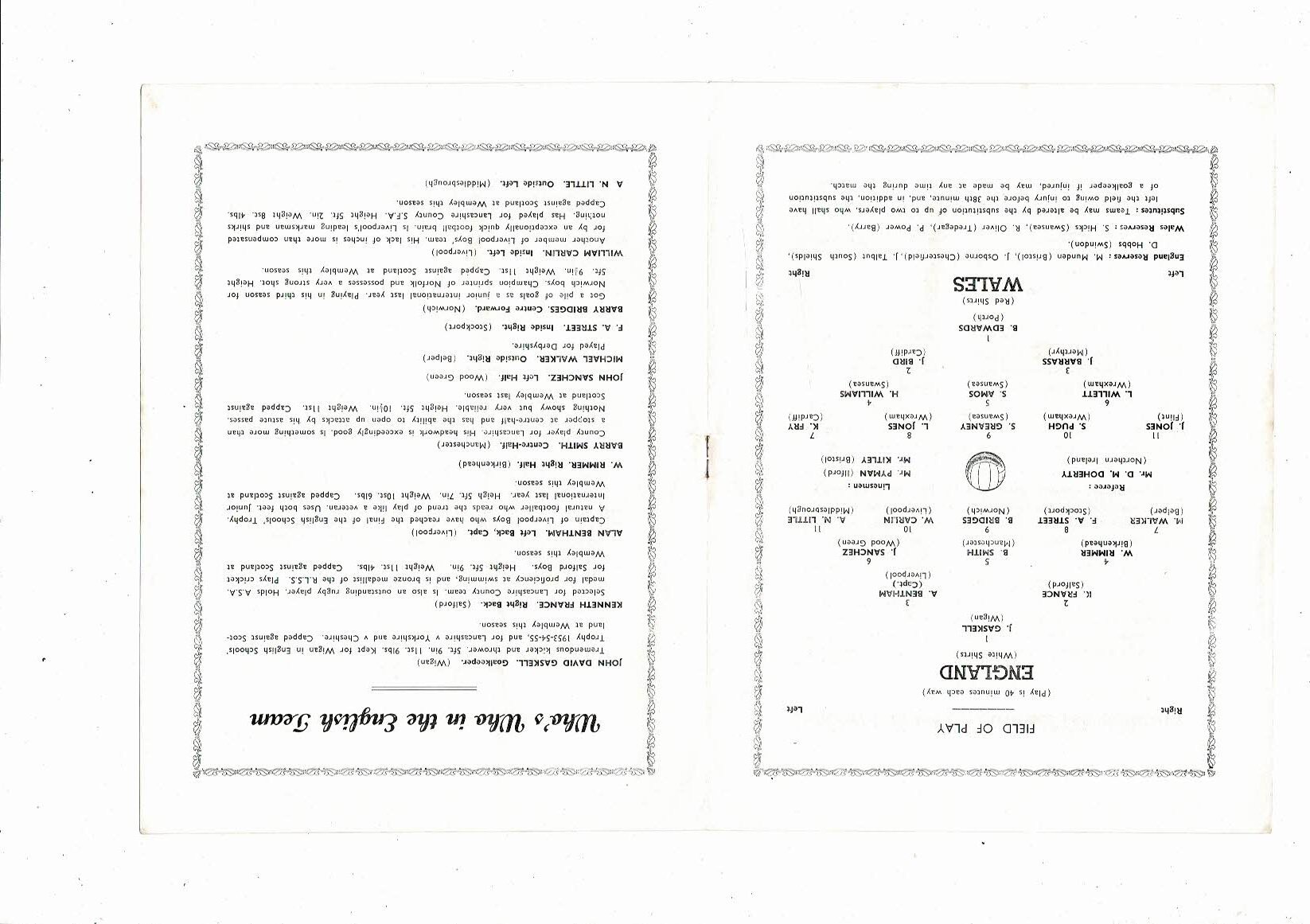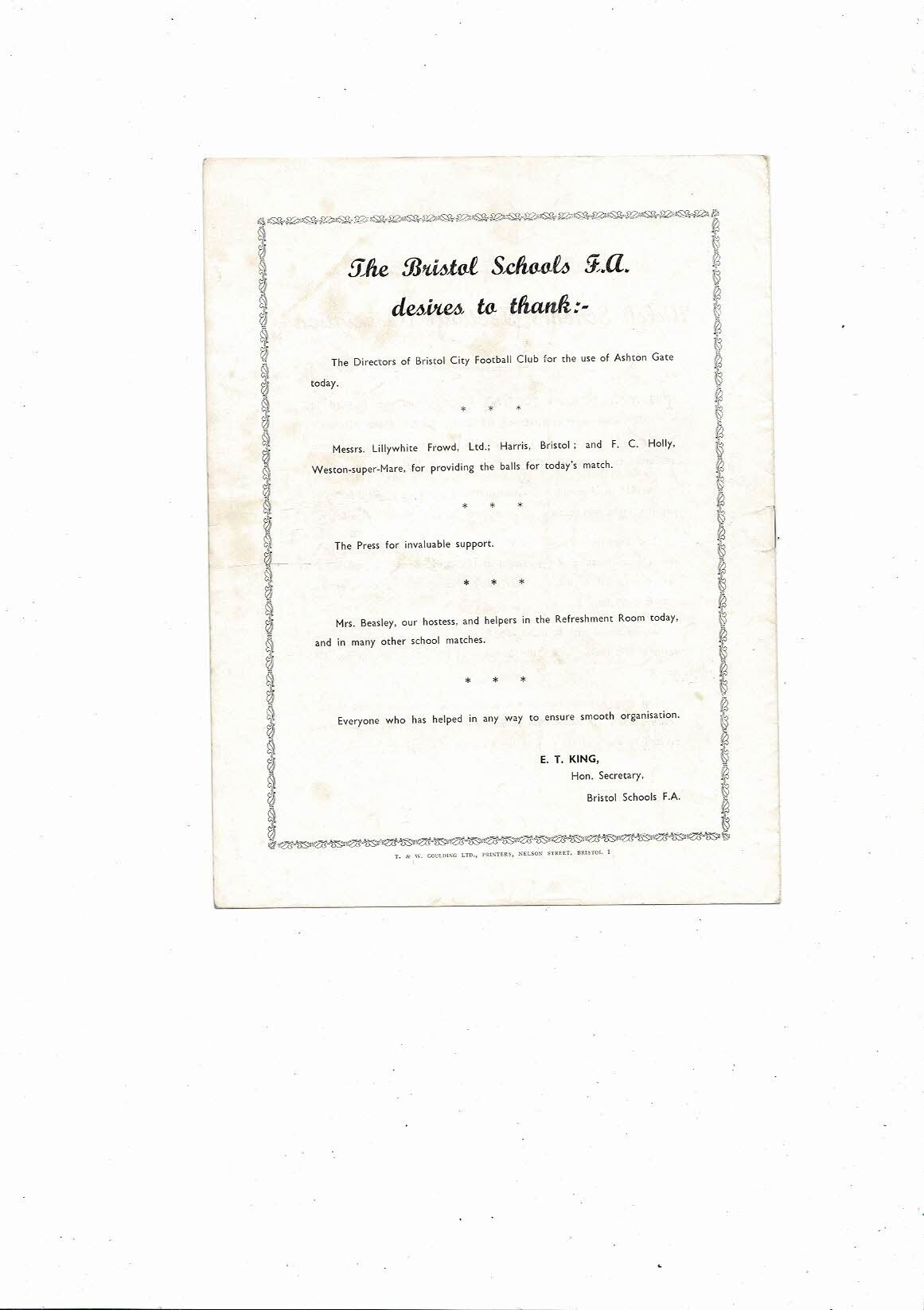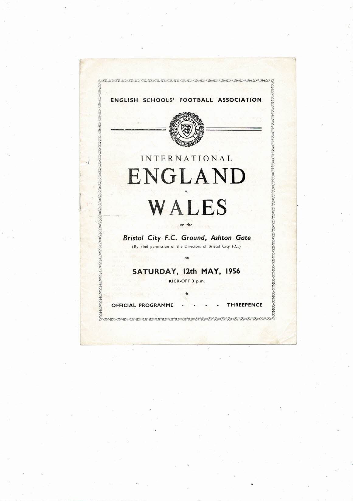1956 England v Wales Schools International Football Programme @ Bristol City