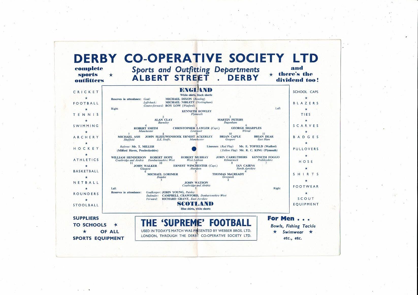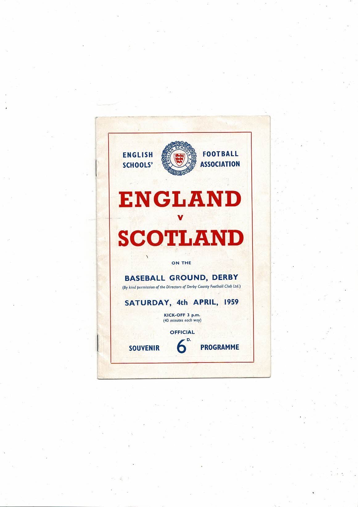 1959 England v Scotland Schools International Football Programme @ Derby