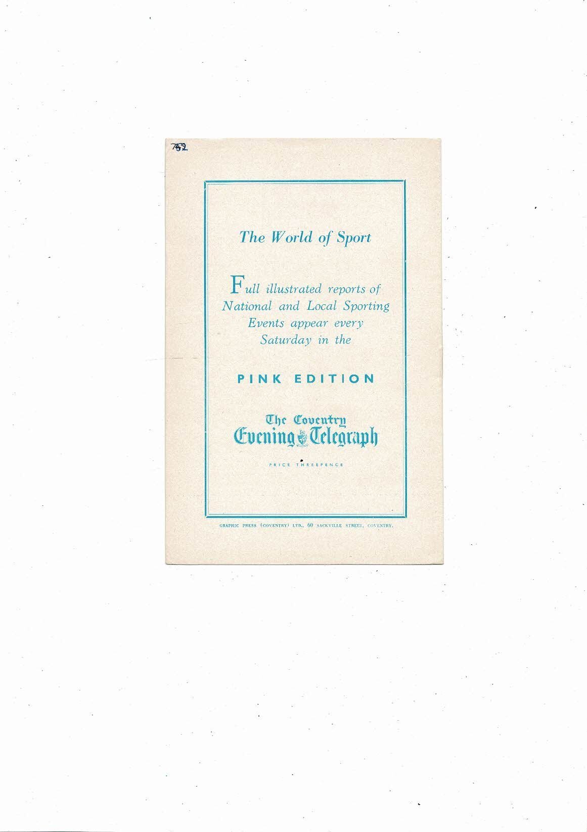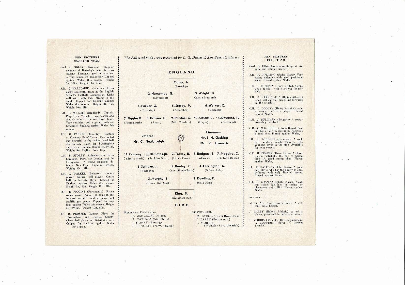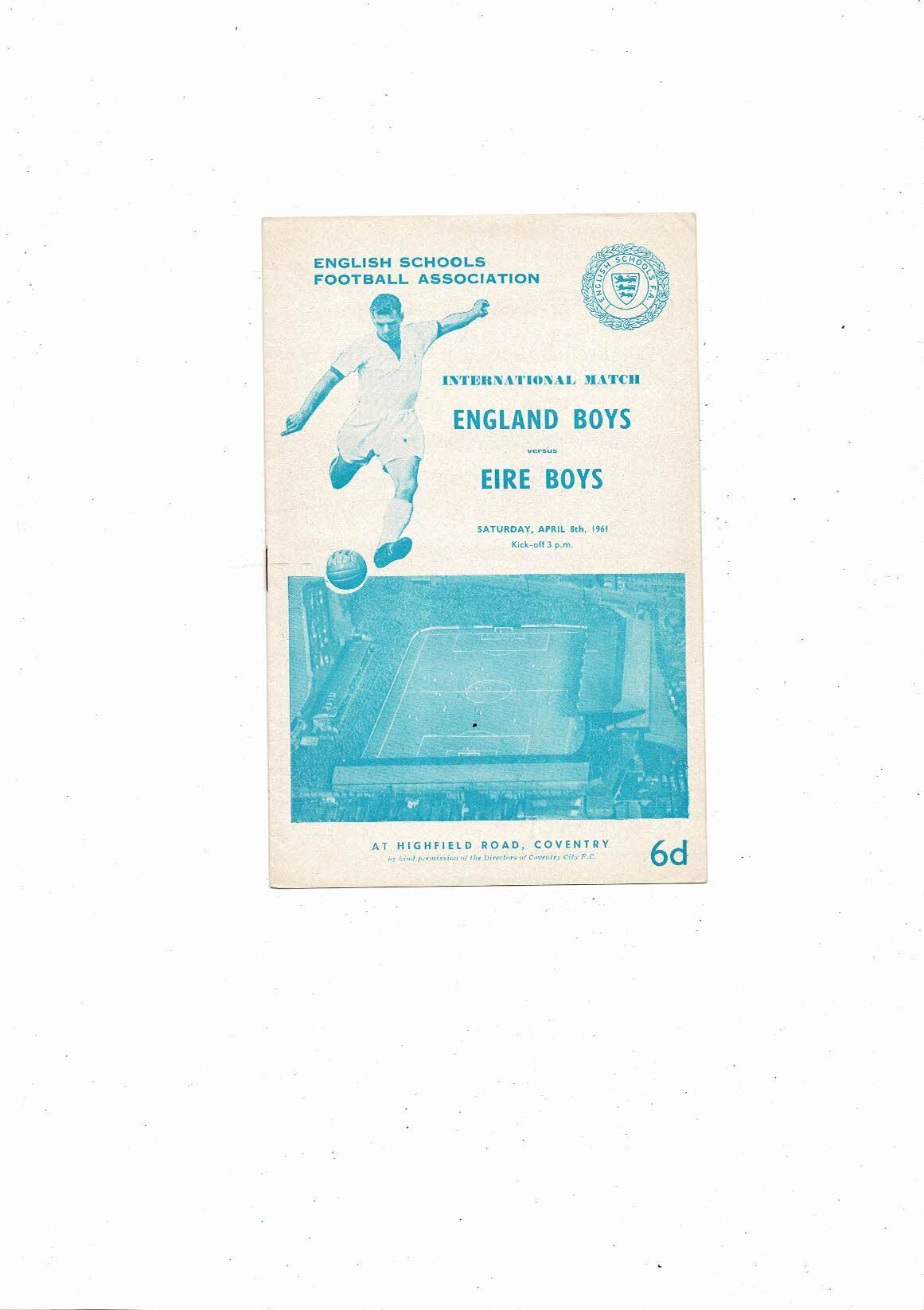 1961 England v Eire Schools International Football Programme @ Coventry City