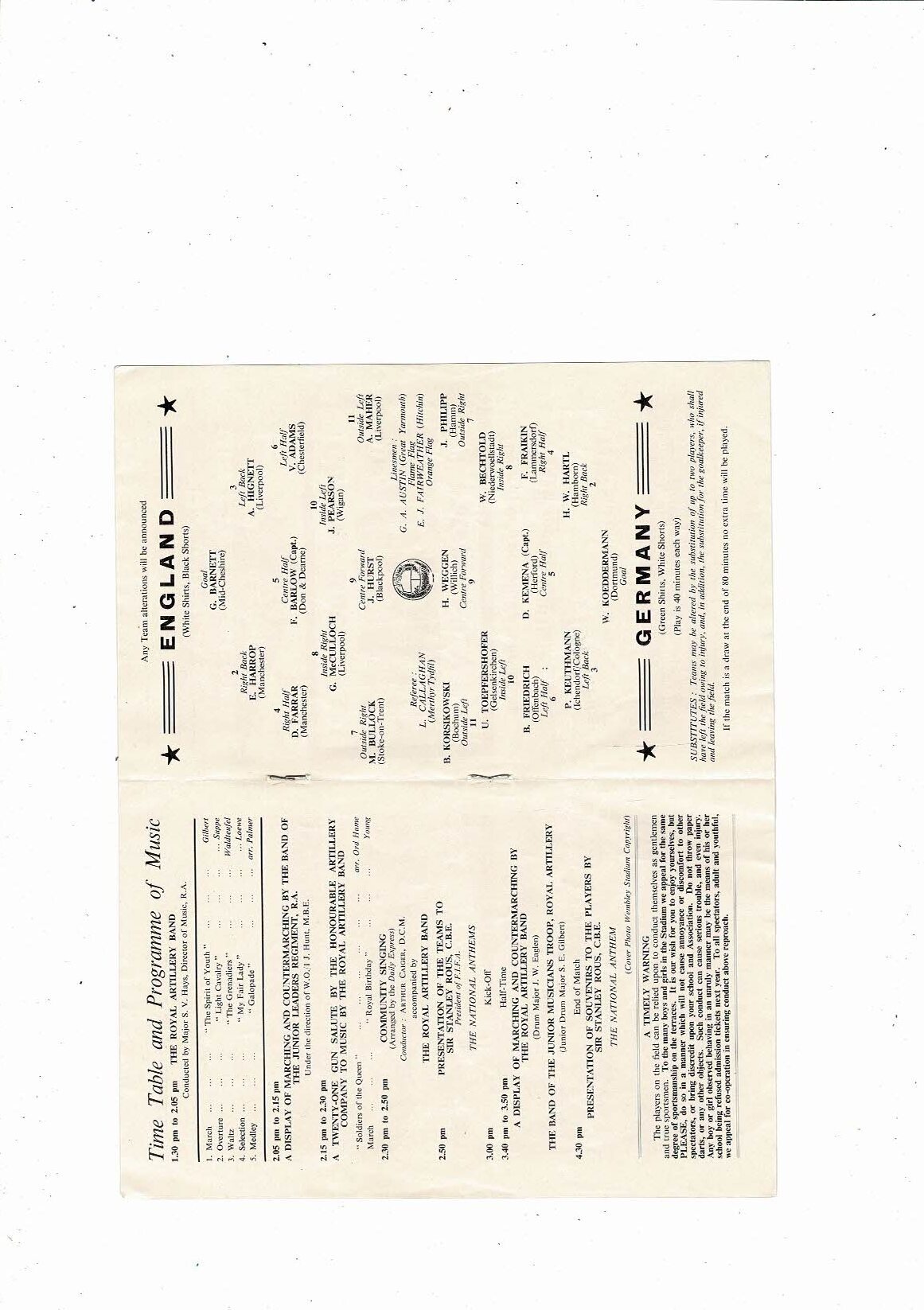 1962 England v Germany Schools International Football Programme