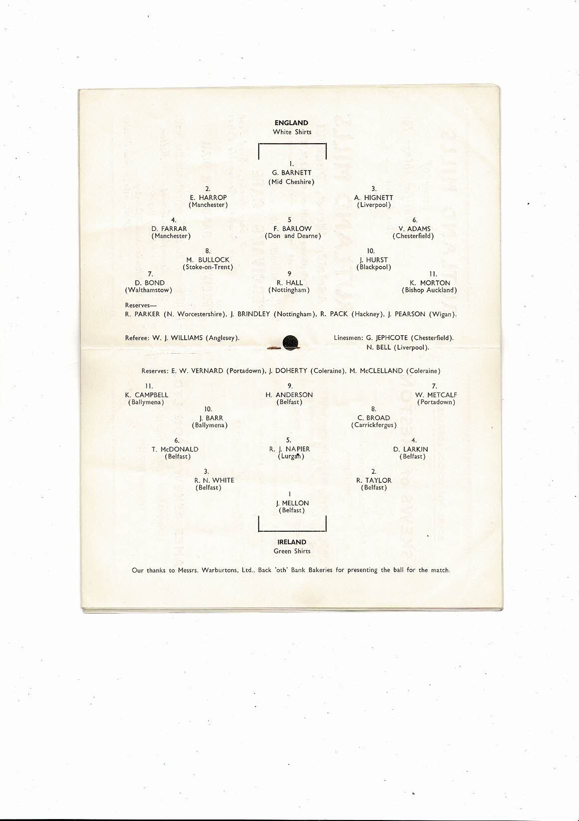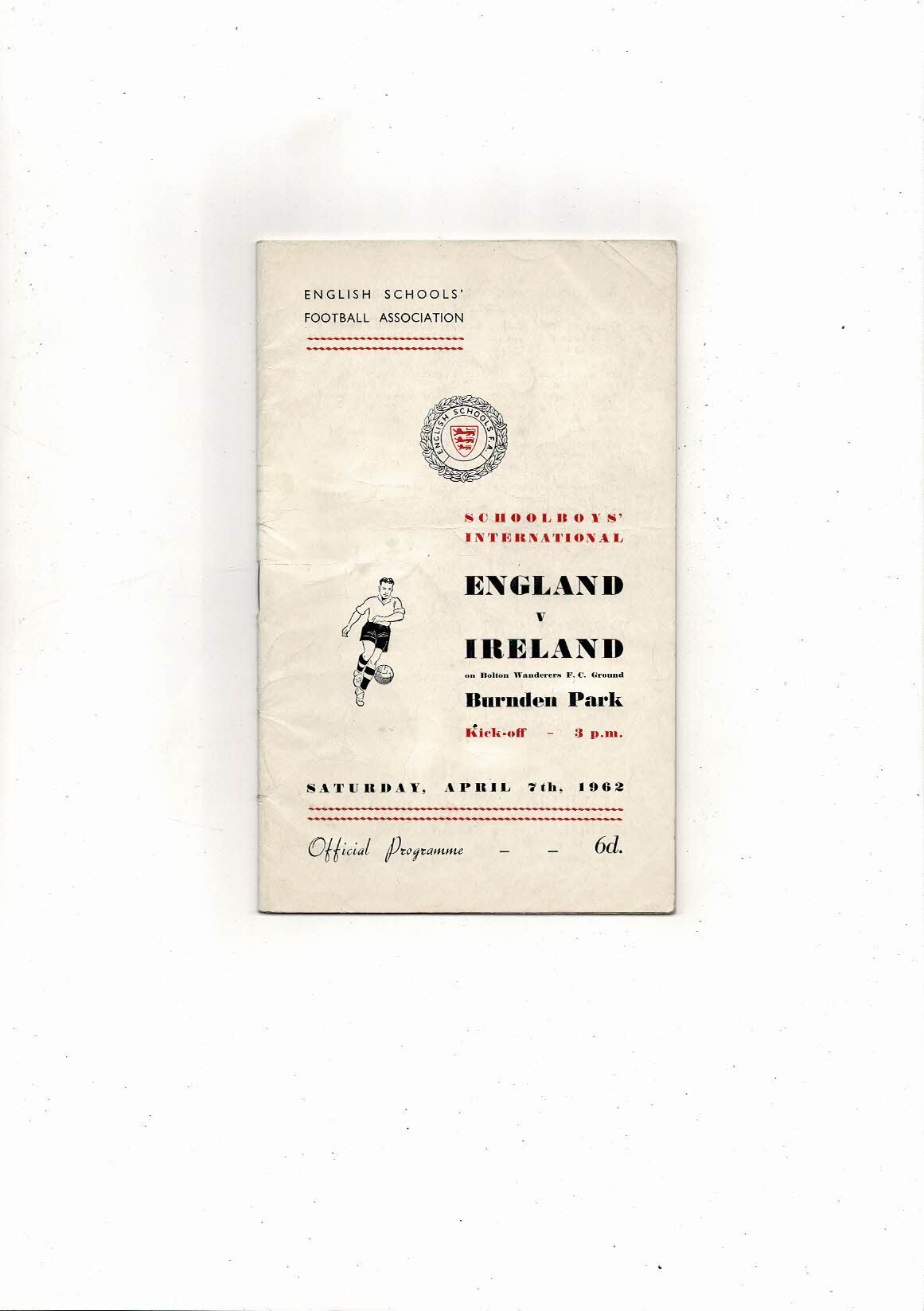 1962 England v Ireland Schools International Football Programme @ Bolton