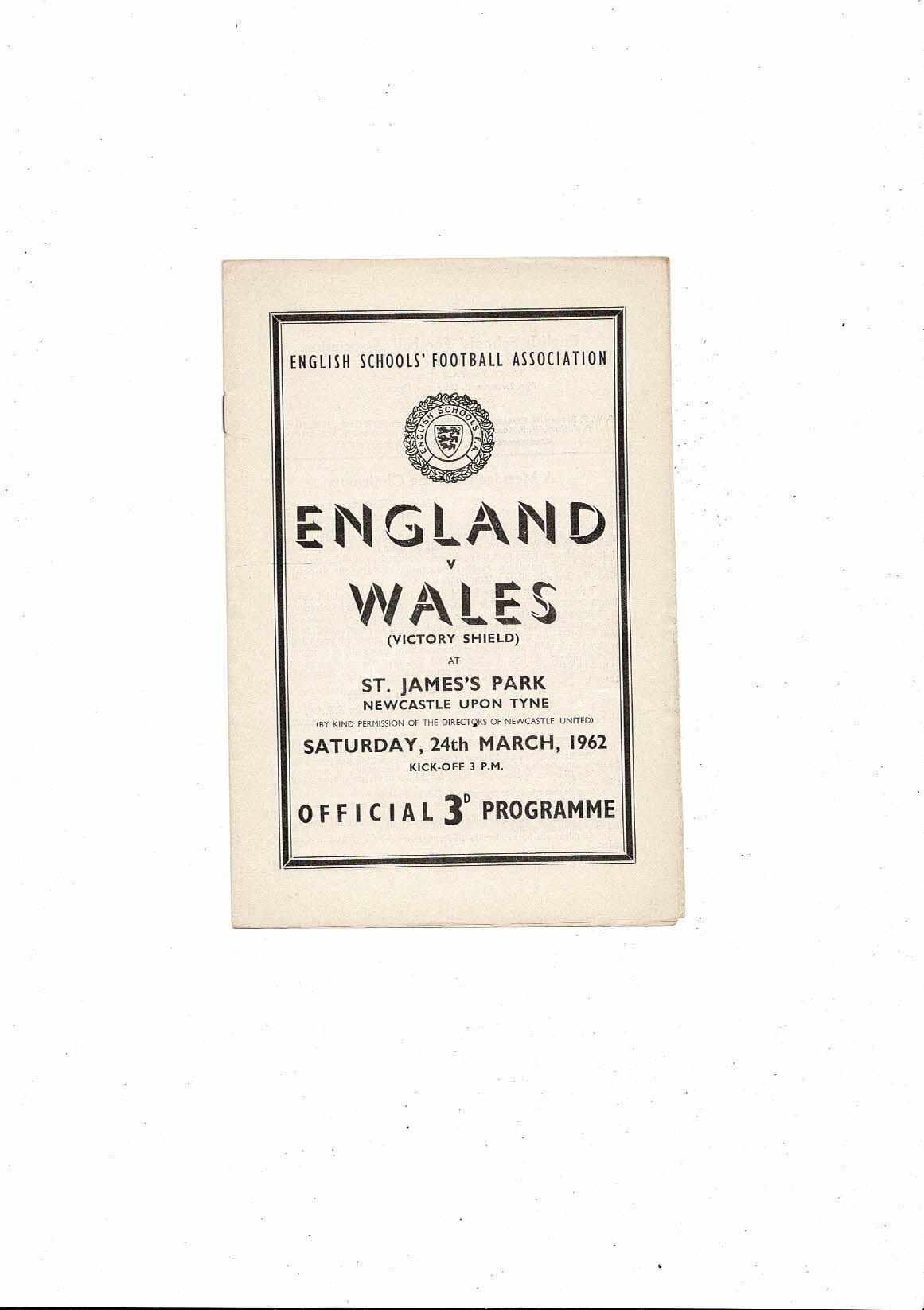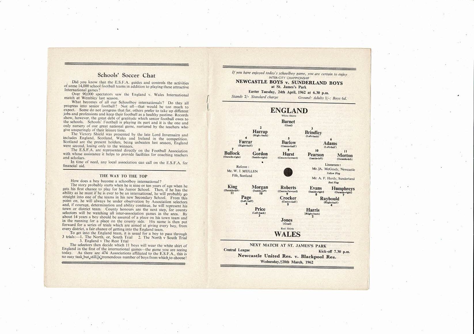 1962 England v Wales Schools International Football Programme @ Newcastle United