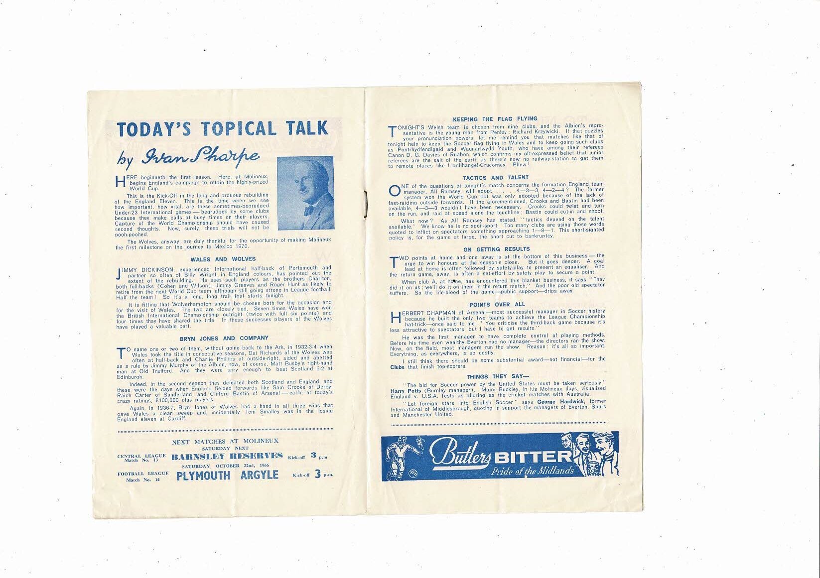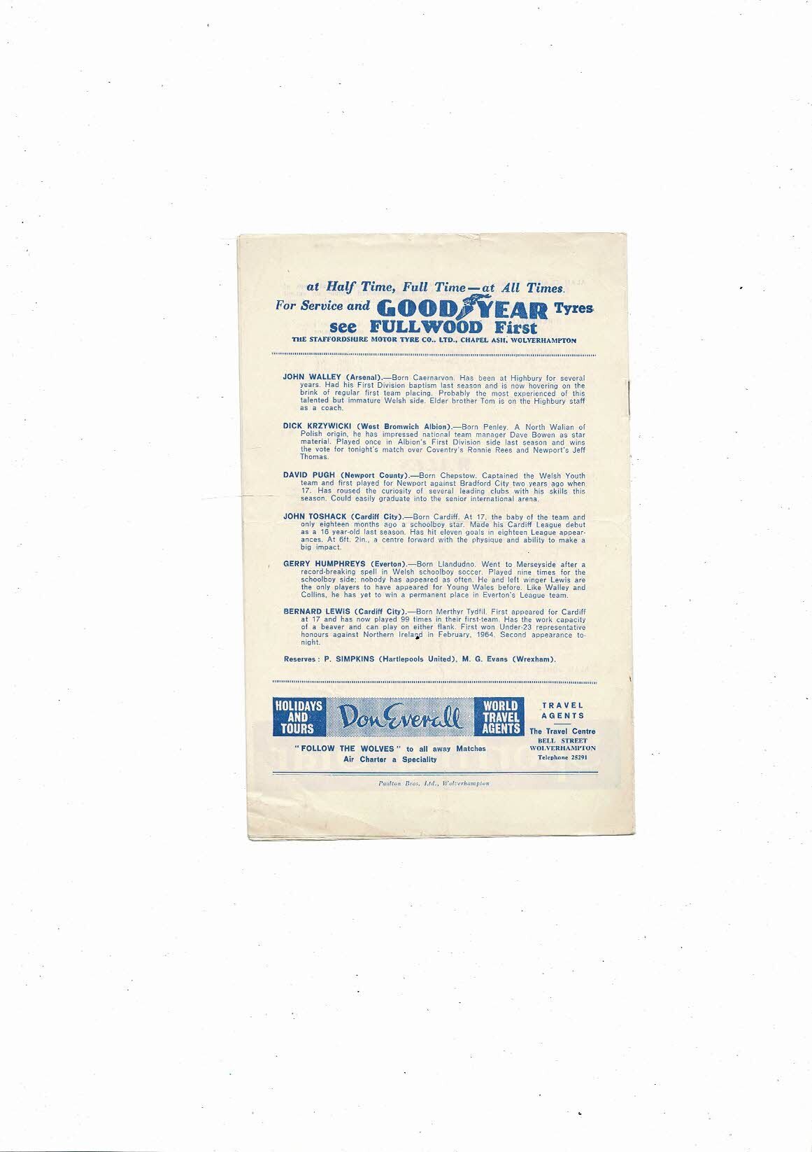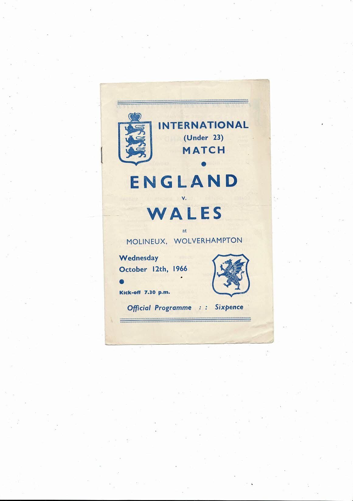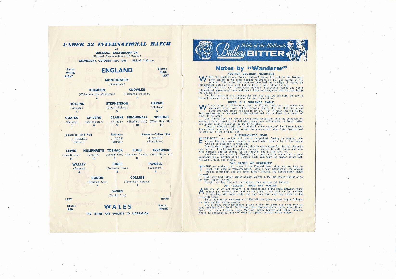 1966 England v Wales U23 International Football Programme @ Wolves