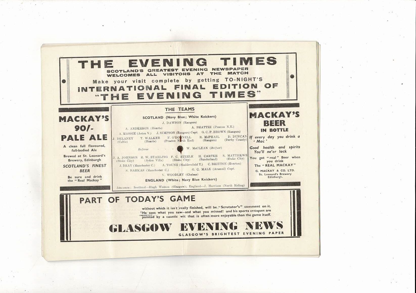1937 Scotland v England International Football Programme @ Hampden Park