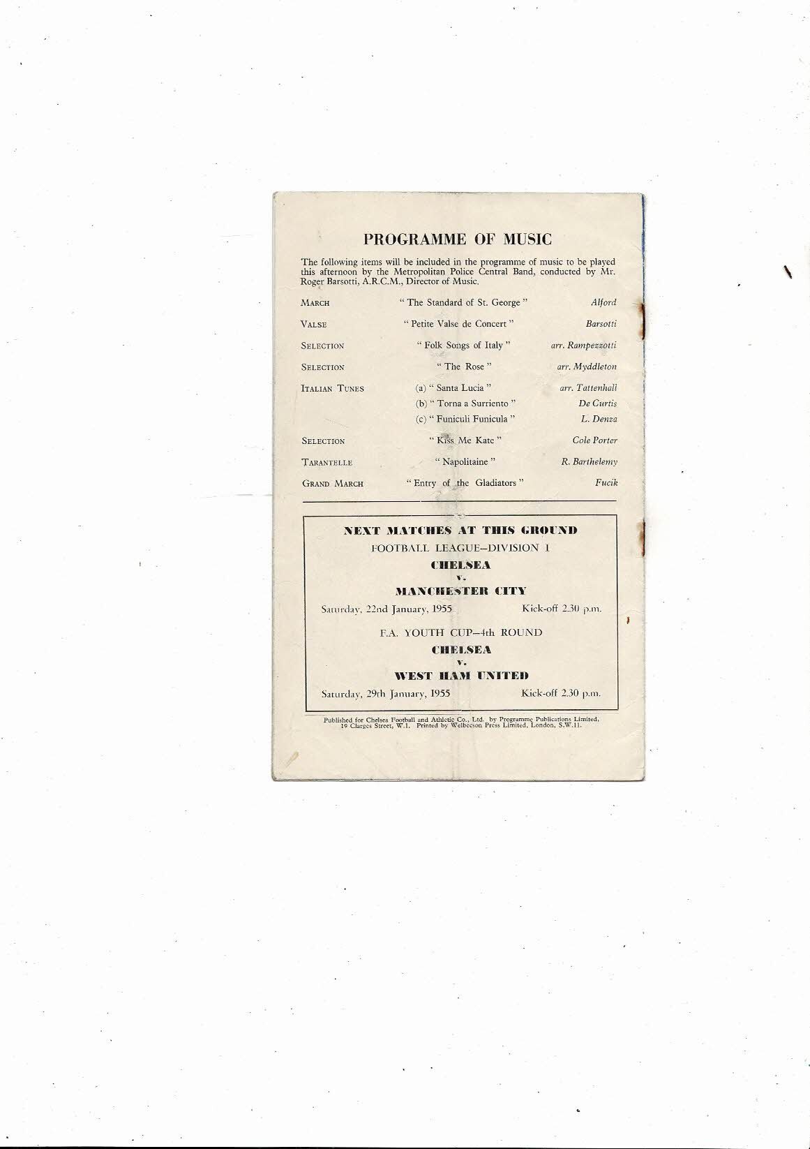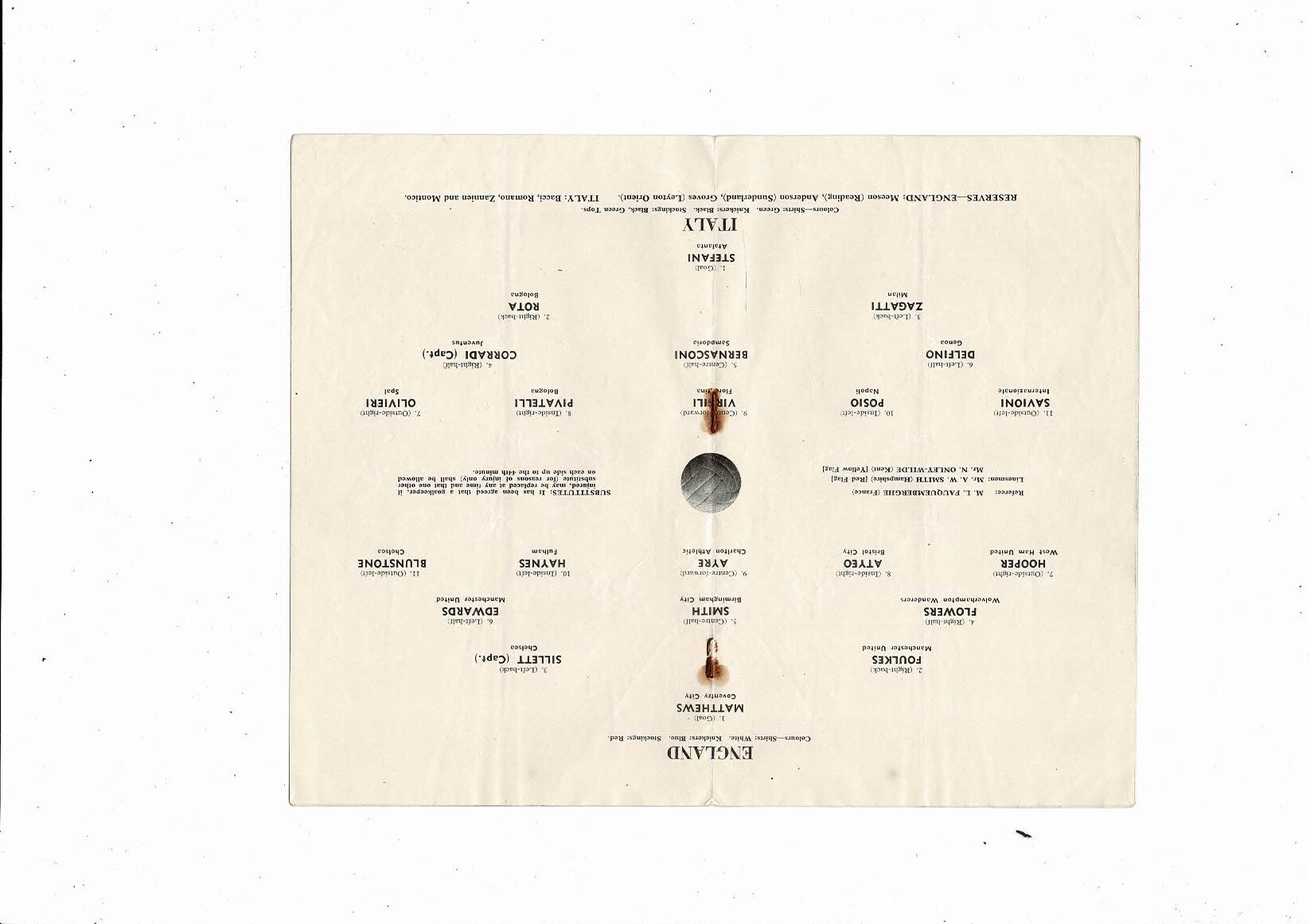 This Original Football Programme is creased also has a fold with some staining, rusty staples, small tear on spine & front cover. No handwriting. Please see scans.