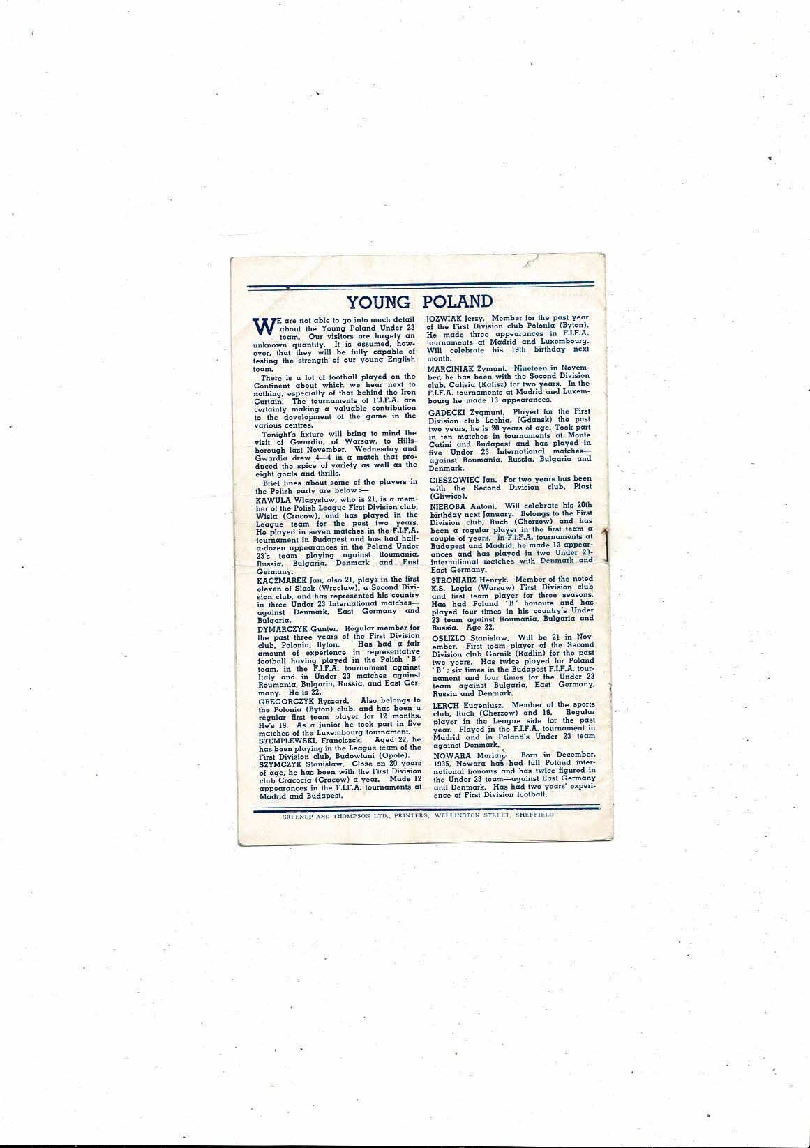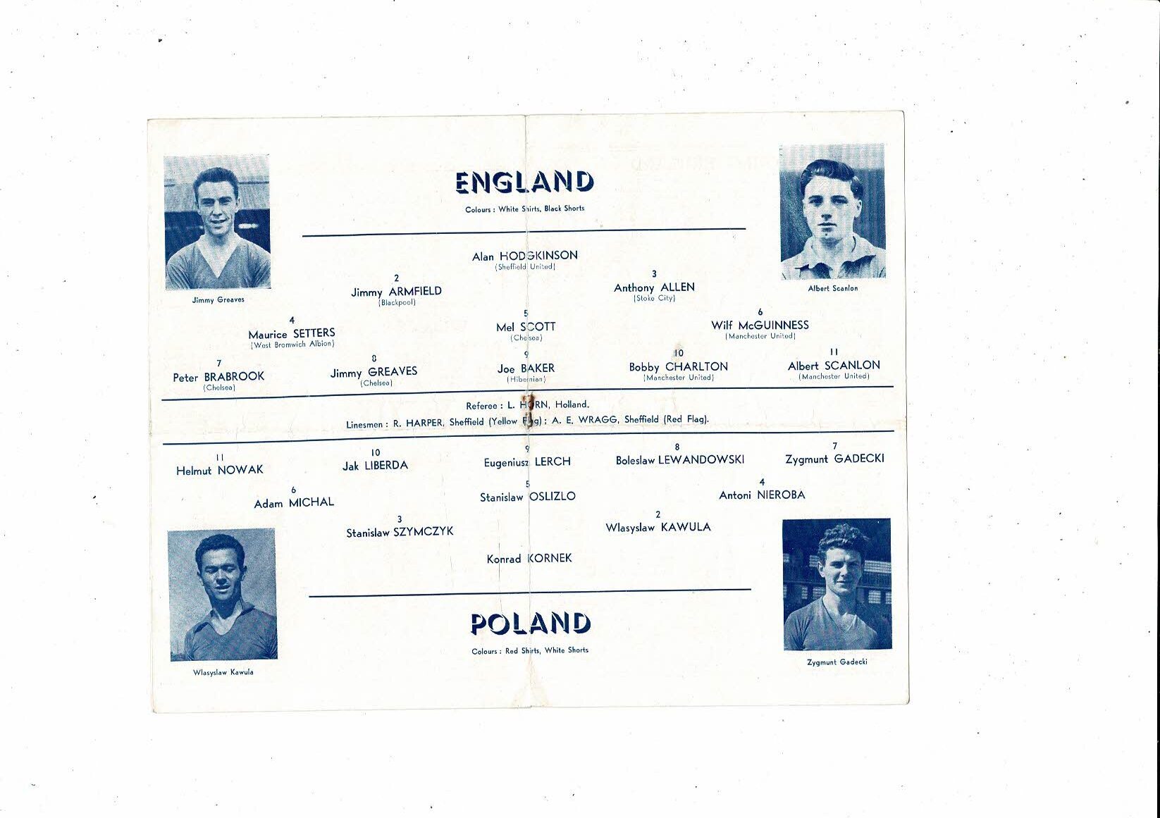 1958 England v Poland U23 Football Programme @ Sheffield Wednesday