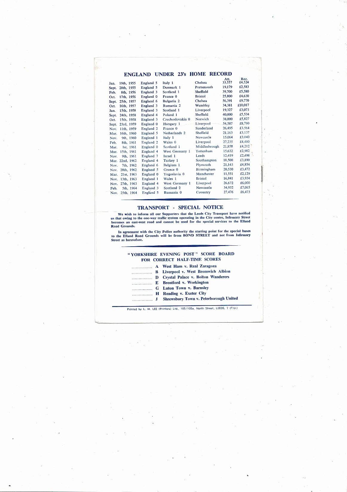 1965 England v Czechoslovakia U23 Football Programme @ Leeds United