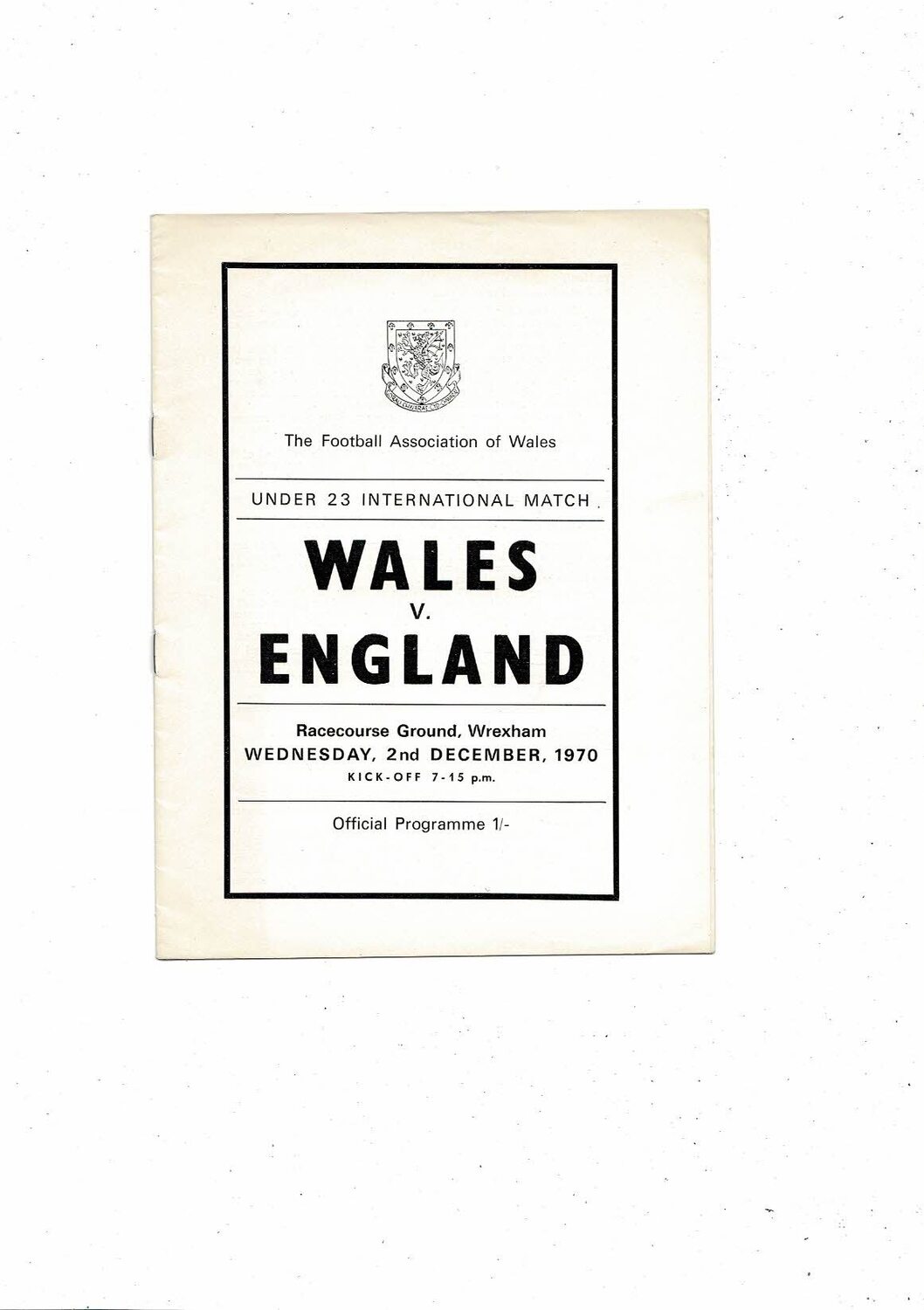 1970 Wales v England U23 International Football Programme @ Wrexham