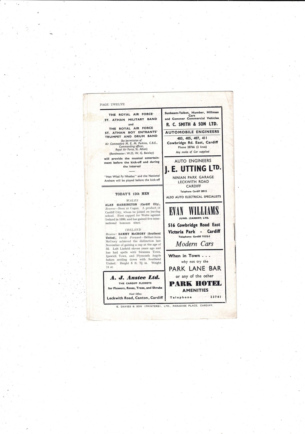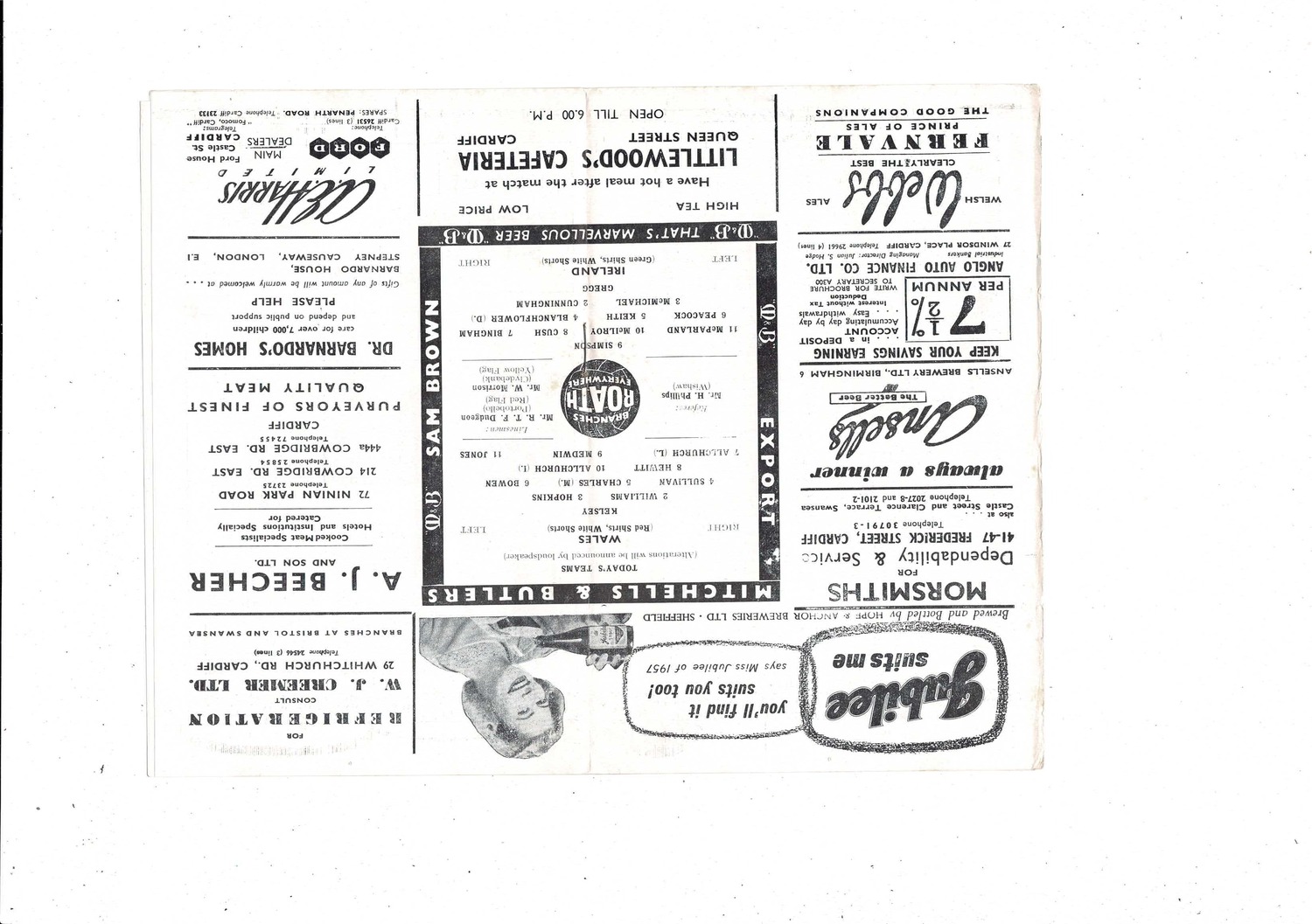 1958 Wales v Ireland International Football Programme @ Cardiff City