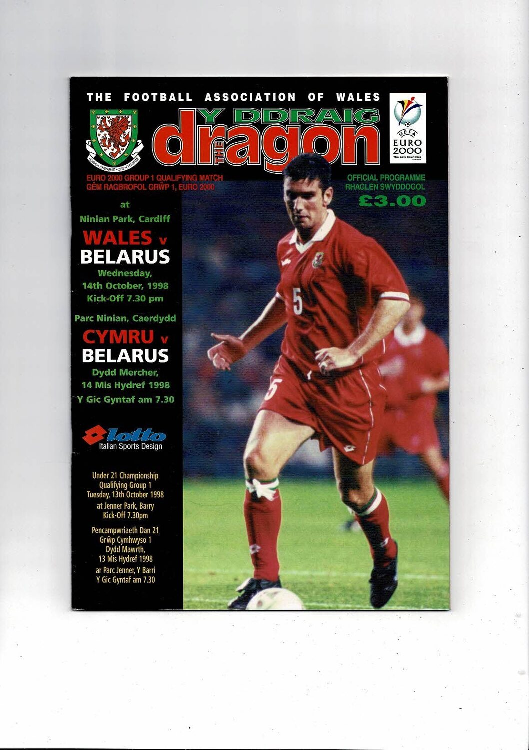 1998 Wales v Belarus European Championship Football Programme @ Cardiff City