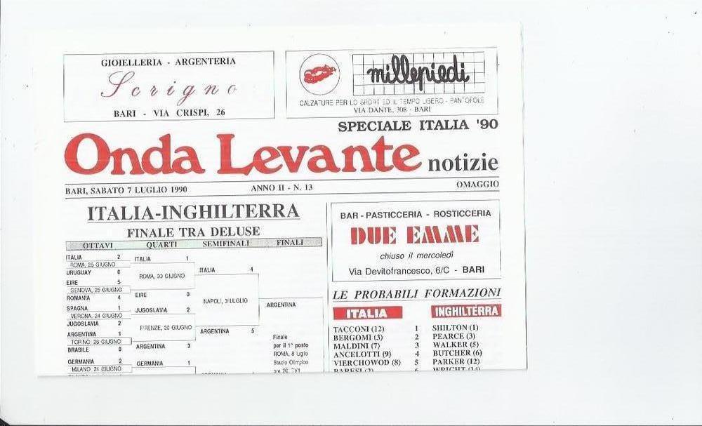 1990 World Cup Italy v England 3rd place play-off Football Programme Onde Levante Edition