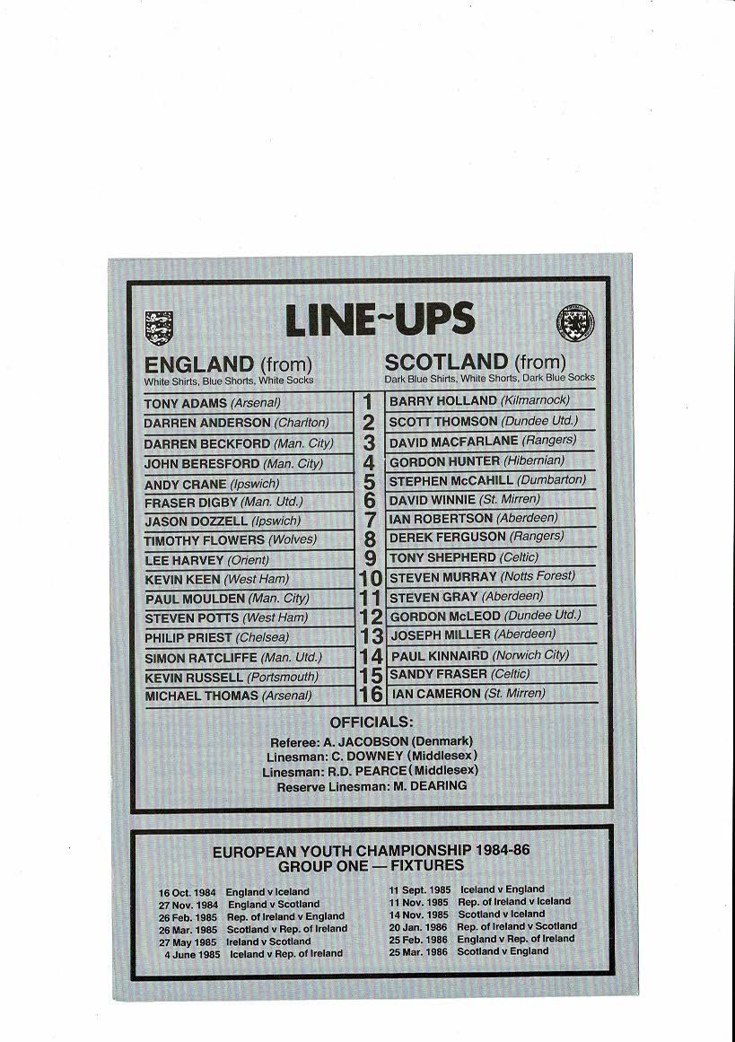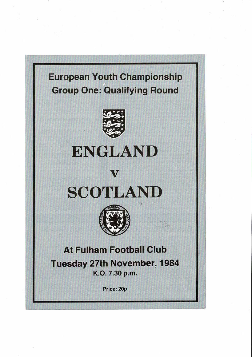 1984 England v Scotland Youth International Football Programme