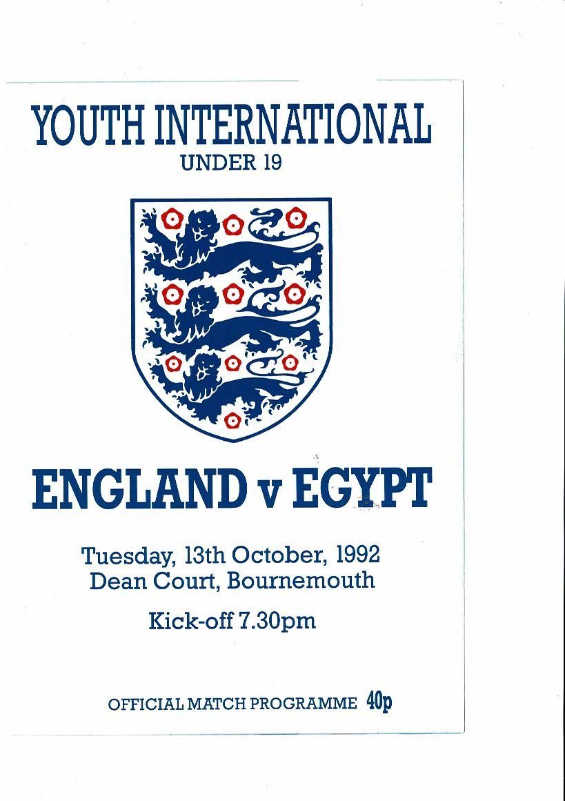 1992 England v Egypt Youth International Football Programme