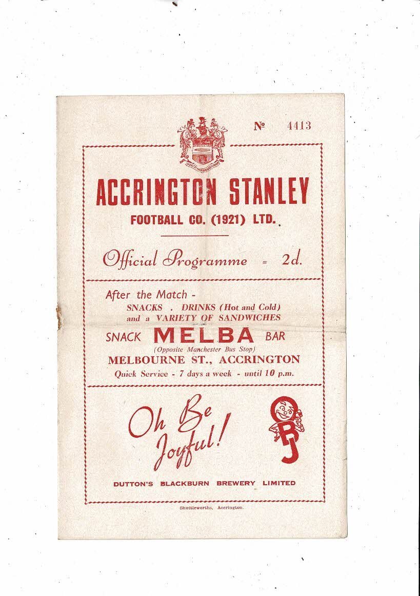 1953/54 Accrington Stanley v Wrexham Football Programme