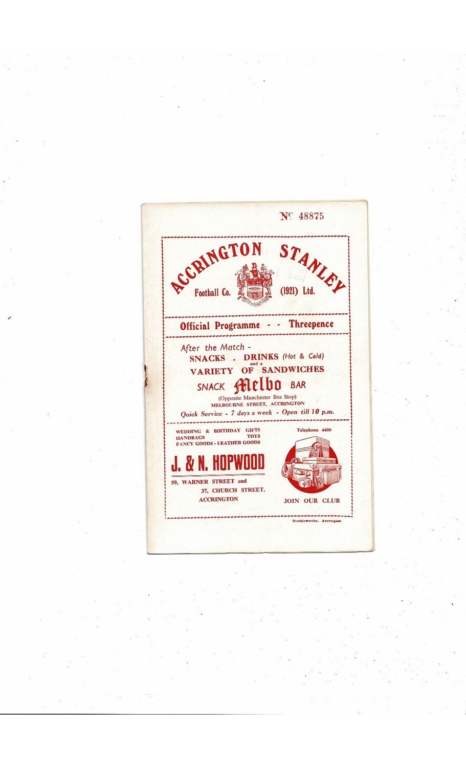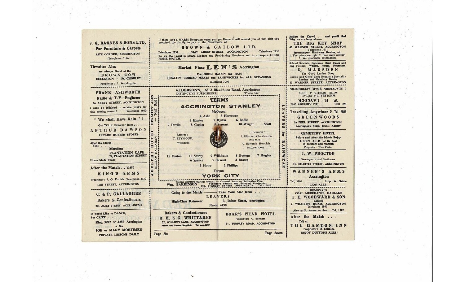 1954/55 Accrington Stanley v York City Football Programme
