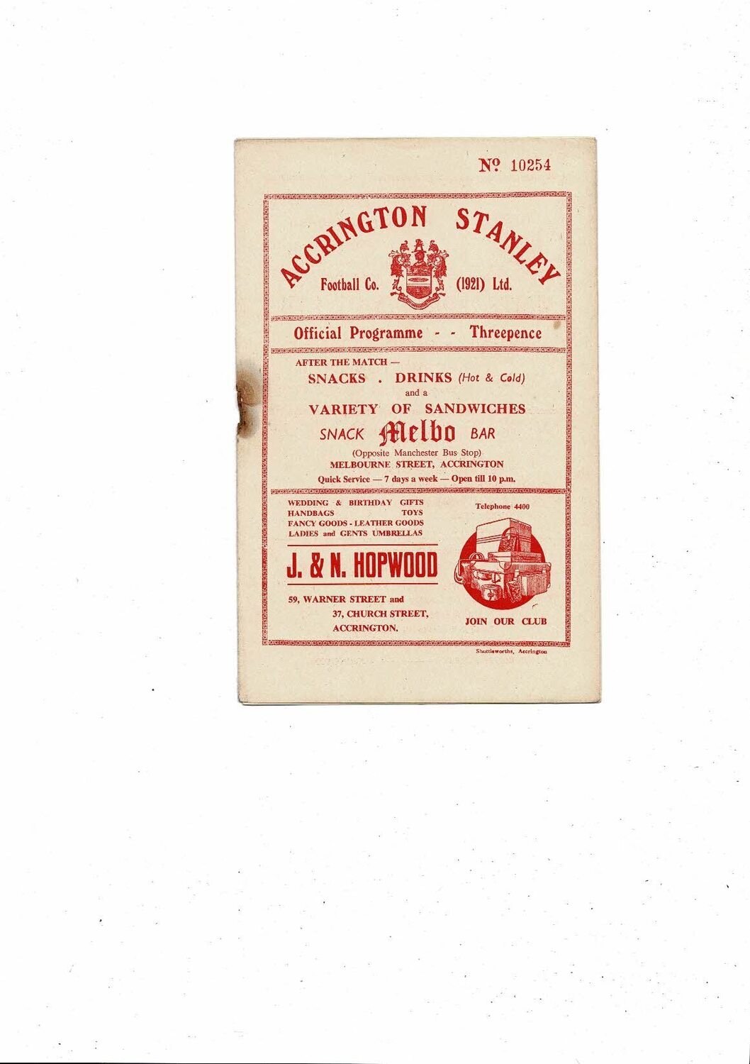 1955/56 Accrington Stanley v Bradford Park Avenue Football Programme